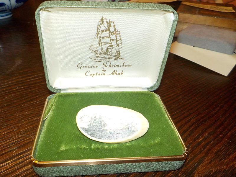 Nice design real schrimshaw pin and original case.