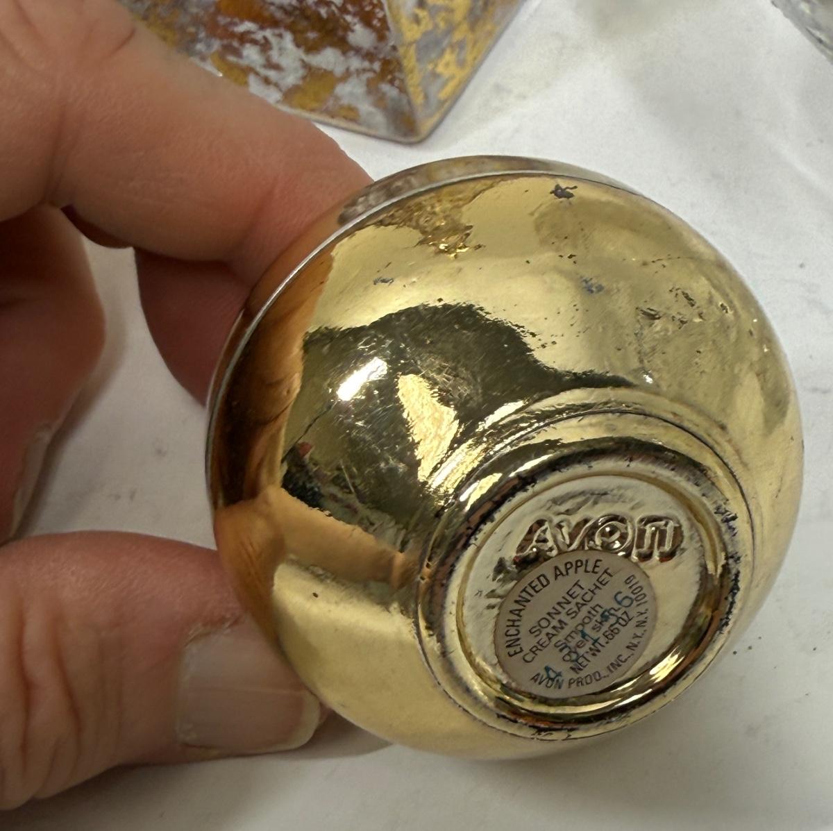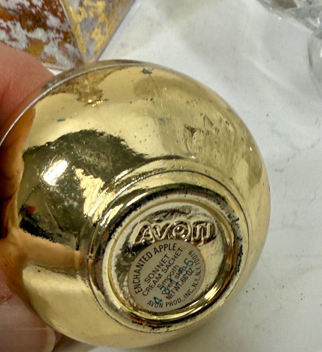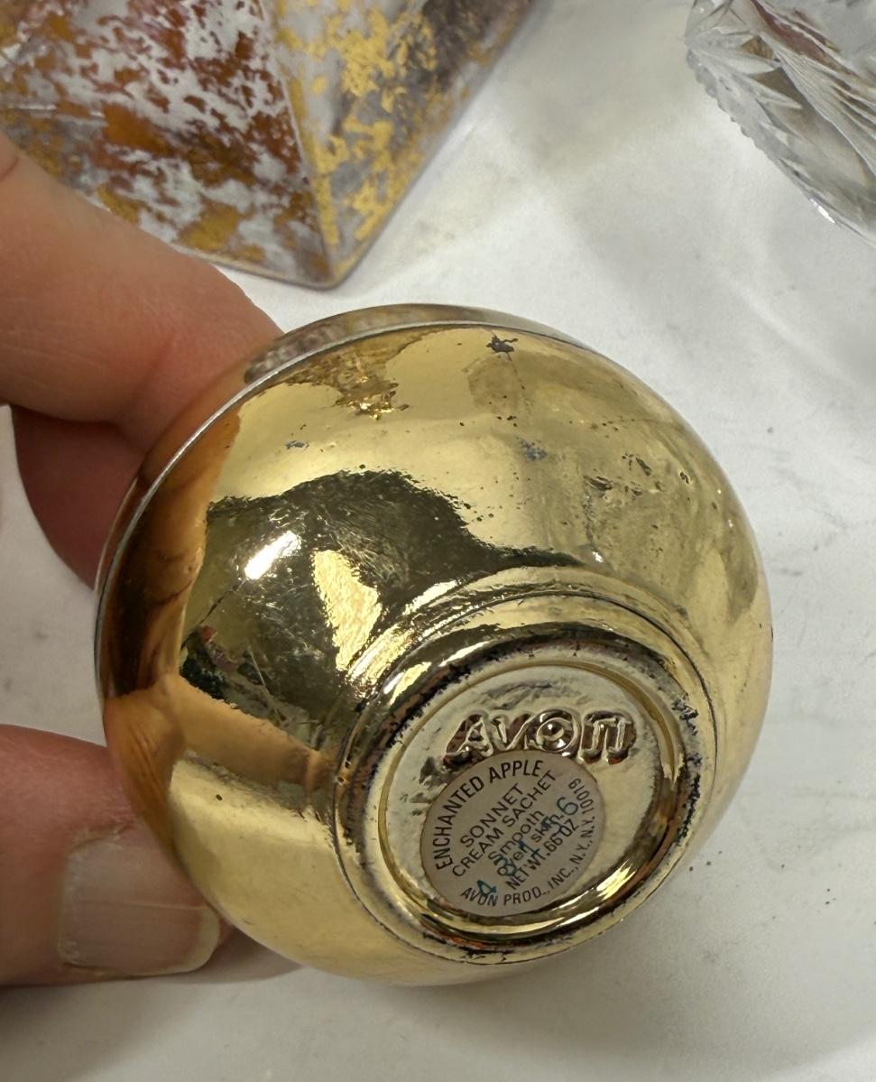 3 piece lot - perfume bottle, Avon apple trinket box, small bowl APG