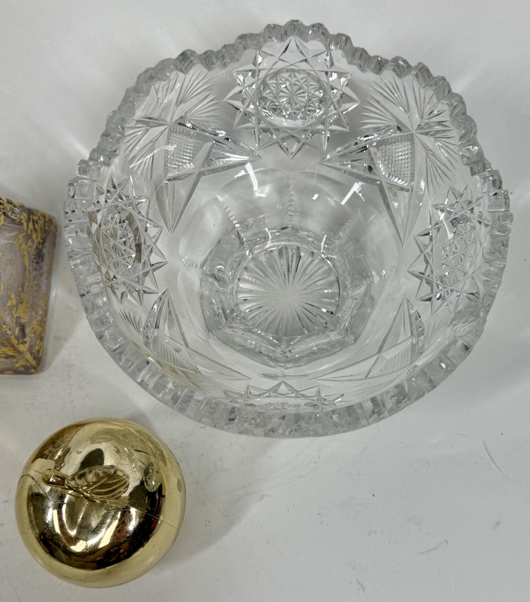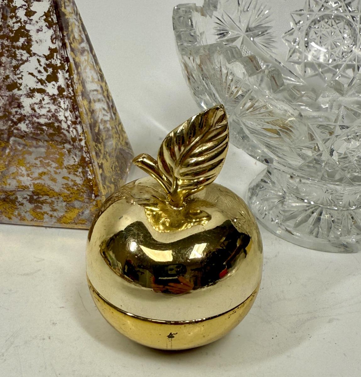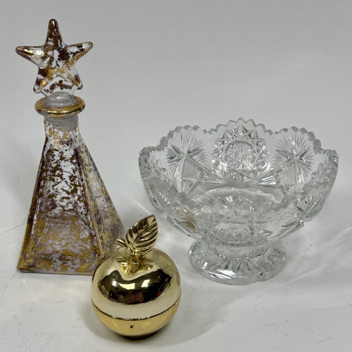 3 piece lot - perfume bottle, Avon apple trinket box, small bowl APG