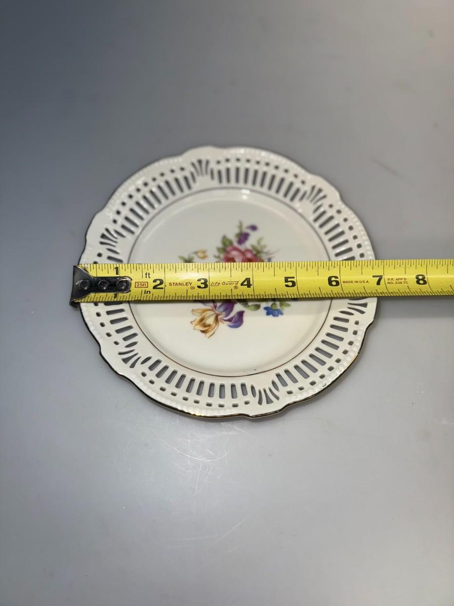 Schwarzenhammer Bavaria Germany U.S. Zone Floral Reticulated Pierced Bowl Roses Tulips