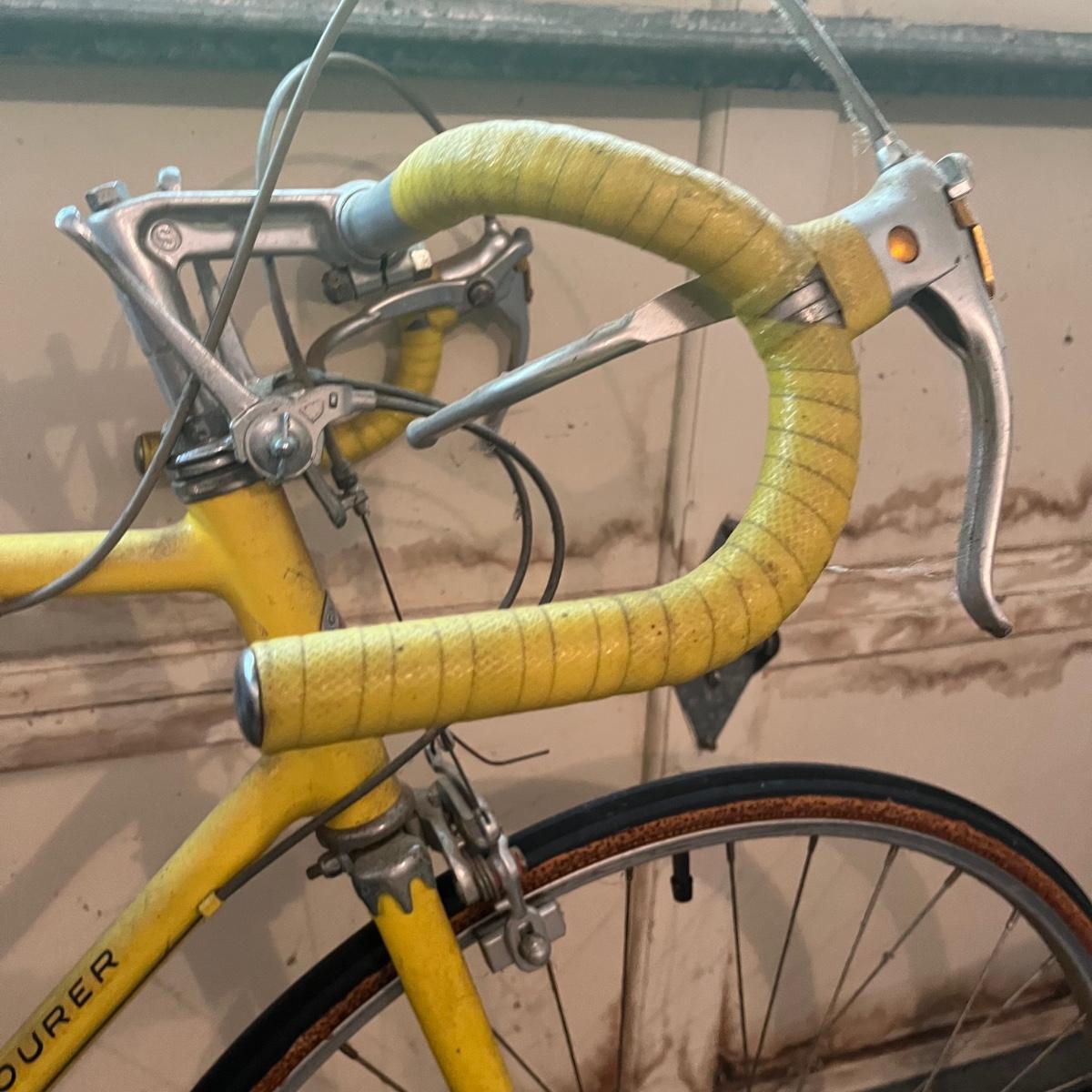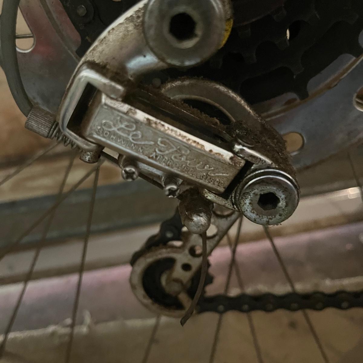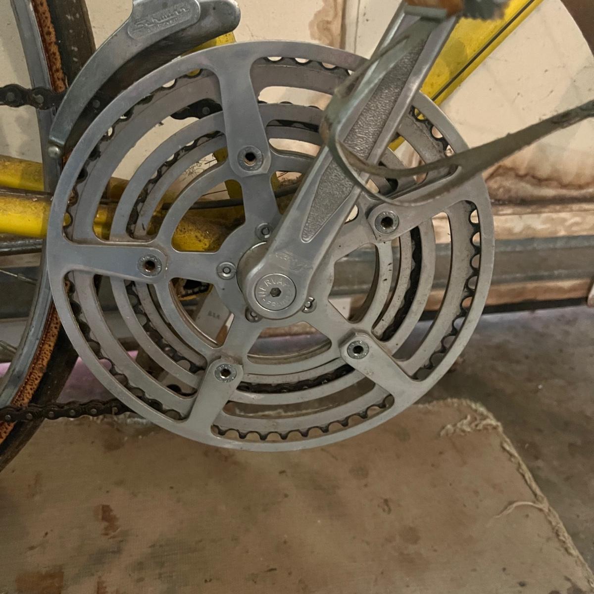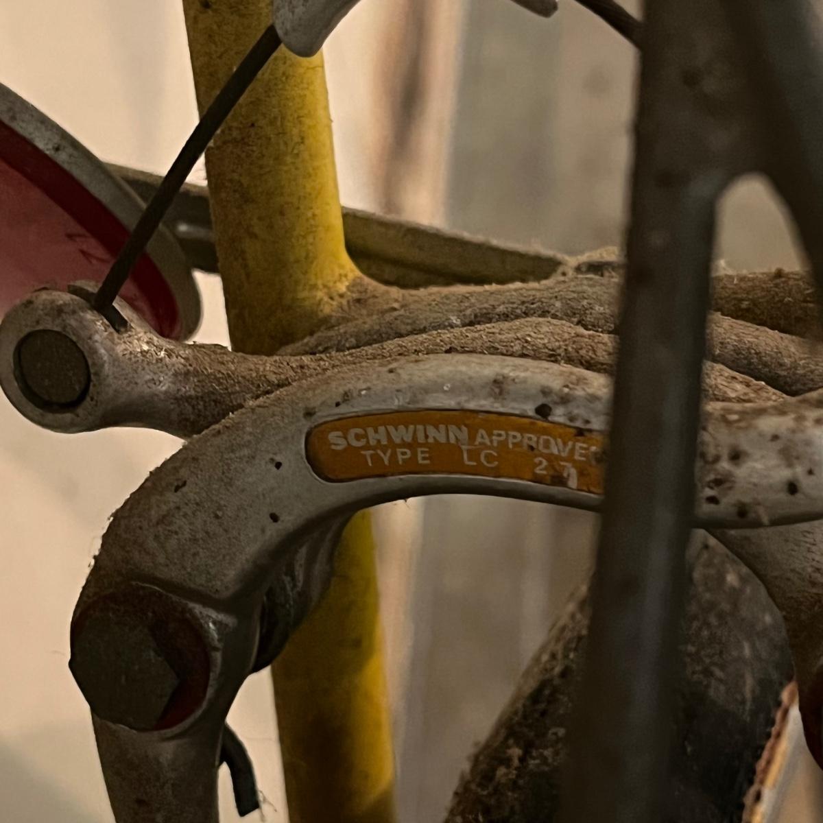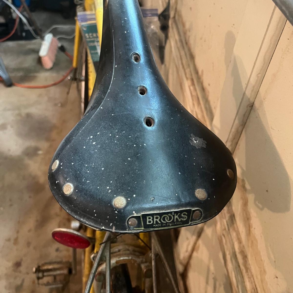 Lot includes a Schwinn Sport Tourer ten speed bicycle with Le Tour gear set, Brooks saddle, center pull brakes and back rack. Tires are old and flat. Bicycle measures 24” from middle of crank to top of seat mount. Also includes owners manual.