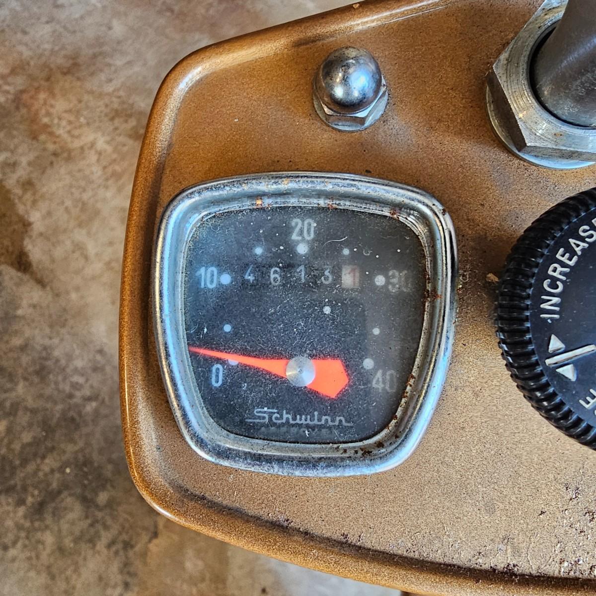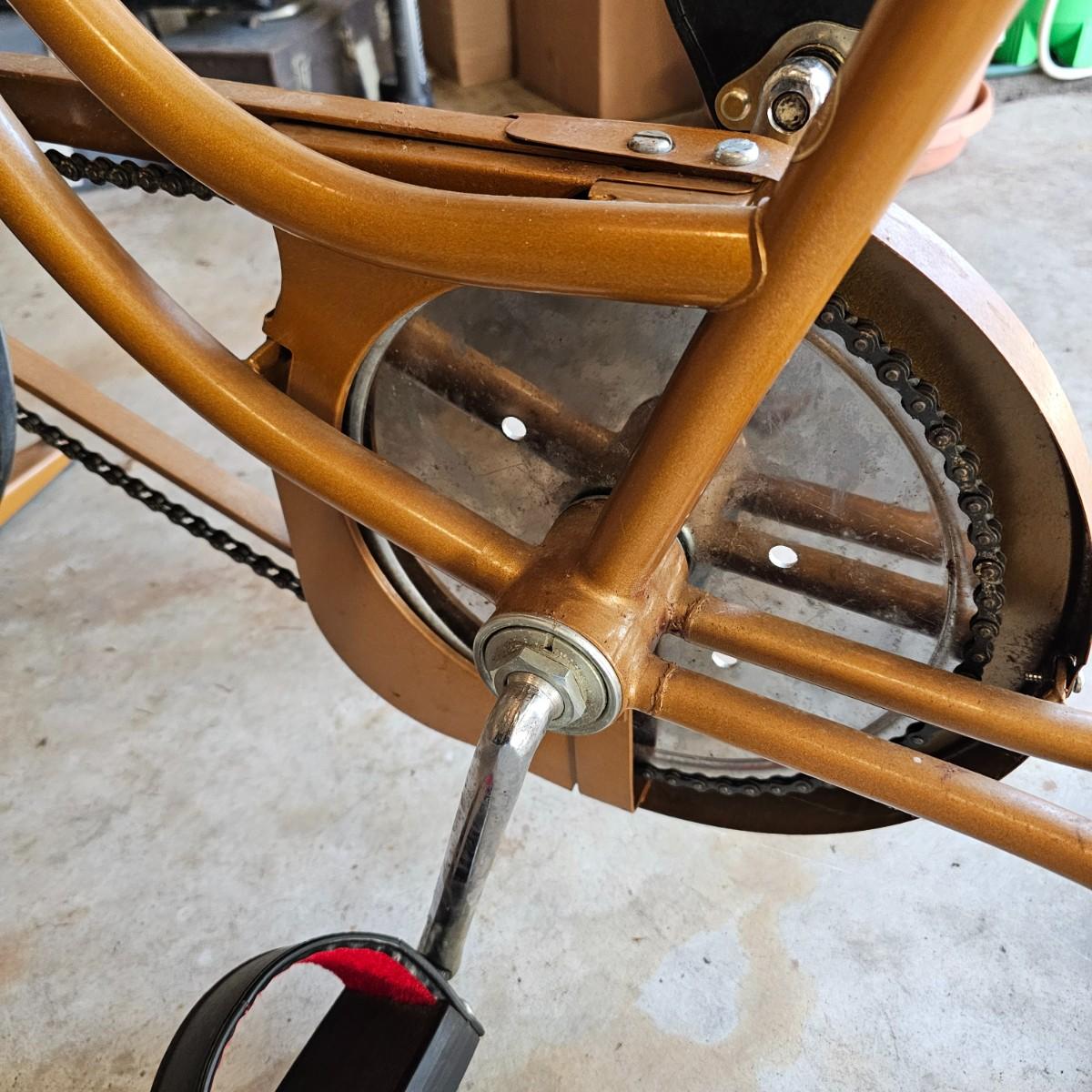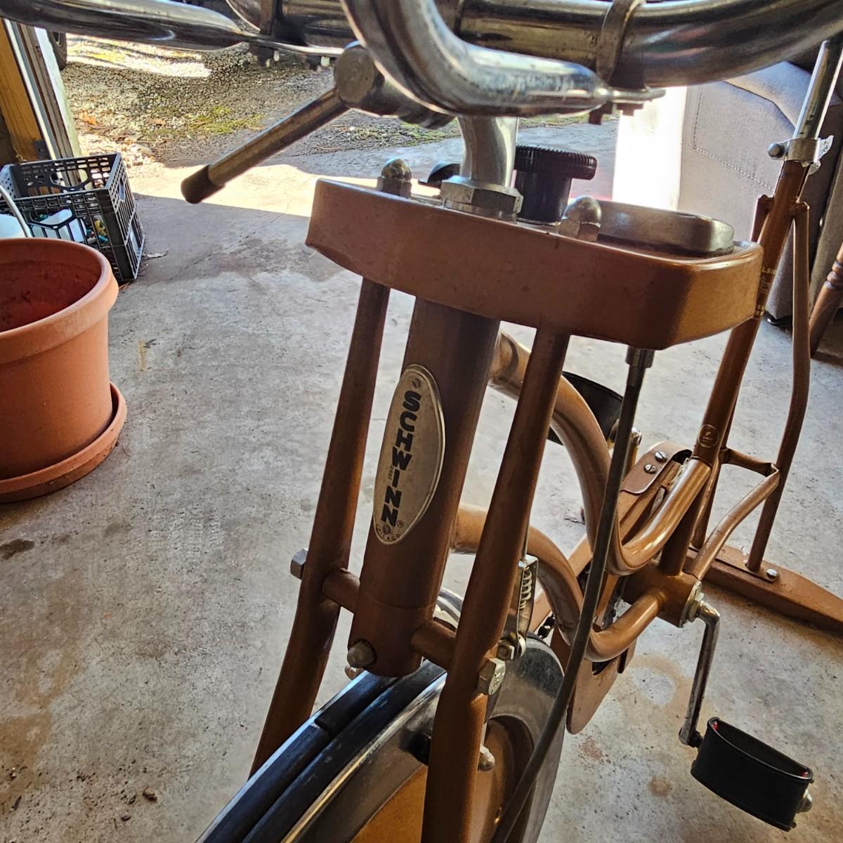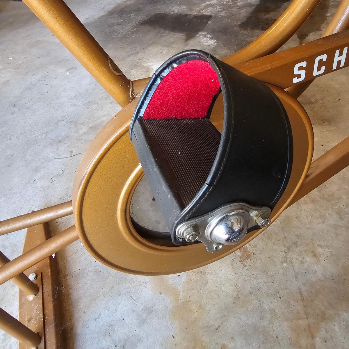 Retro style vintage exercise bike by Schwinn. Adjustable friction style wheel, speedometer, odometer and manual timer. Original seat, pedals have comfort straps for long rides. Also includes an attached book rack. Unit measures 26" x 43" x 49"H. See photos for details. Local pickup only.