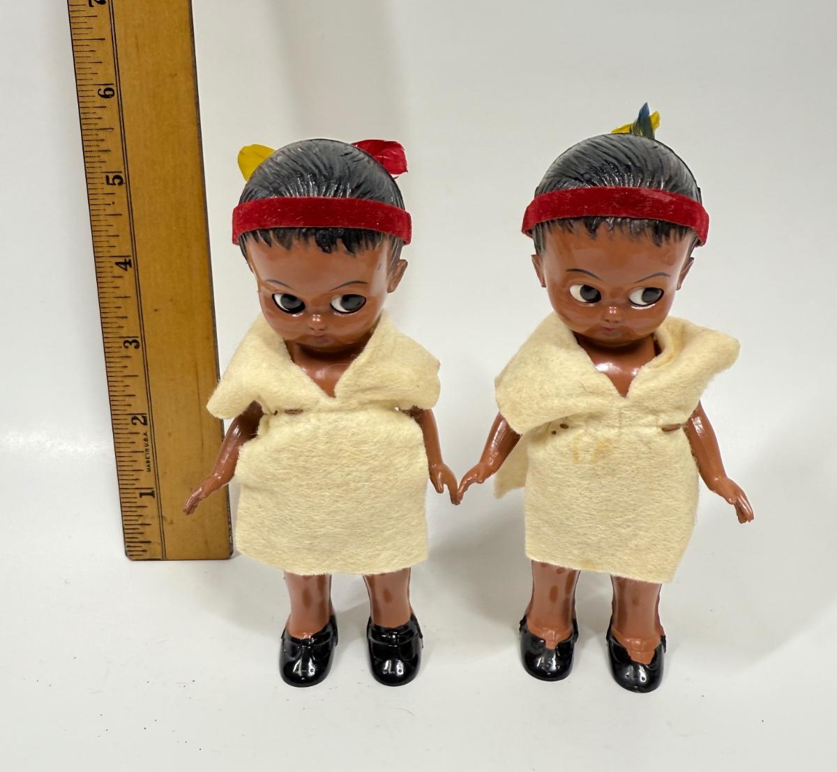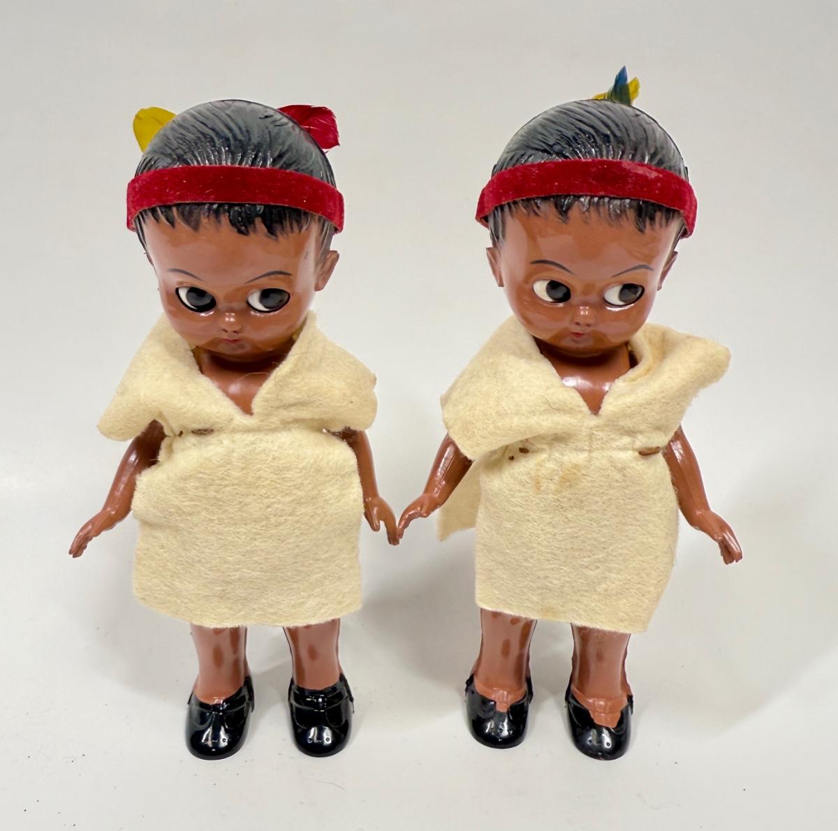 2 pc Lot of Vintage Knickerbocker Native American Indian Dolls 6" tall