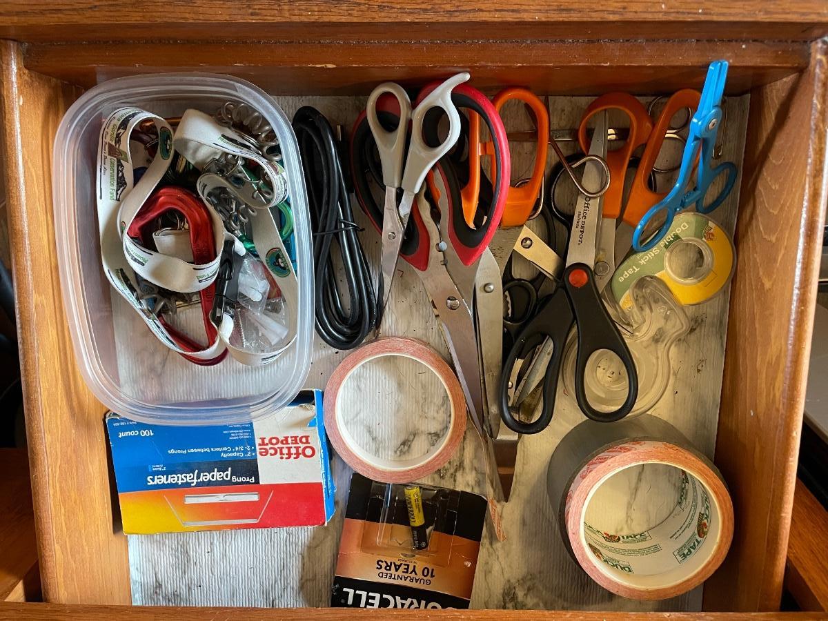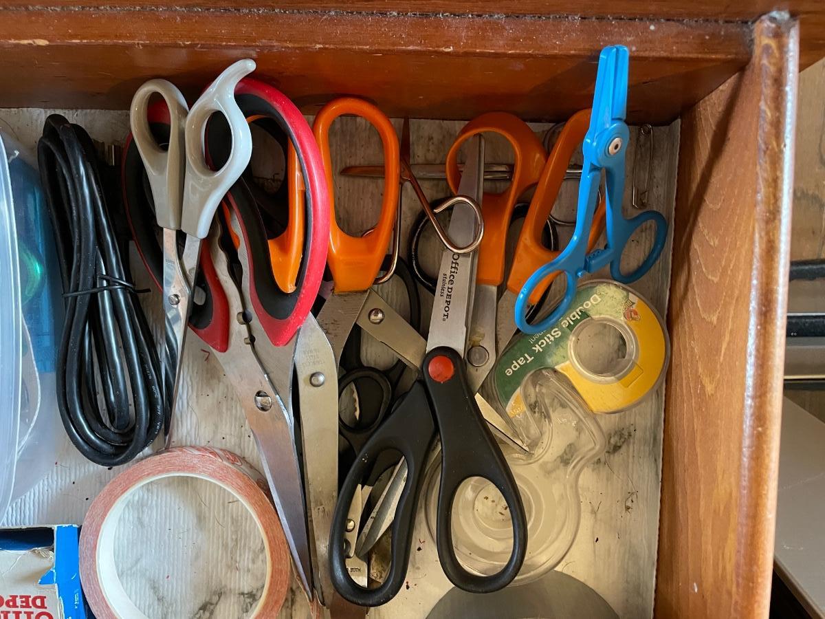 SCISSORS, TAPE, CARABINERS, LANYARDS