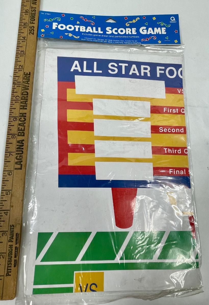 New in pkg. Follows standard football pool rules, is designed to identify those who chose winning squares based on the football game score at the end of each quarter.