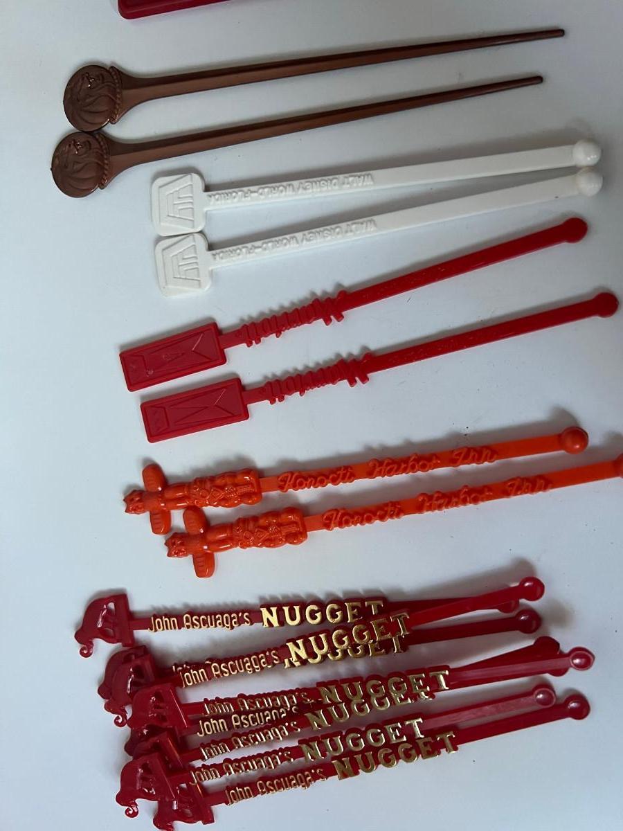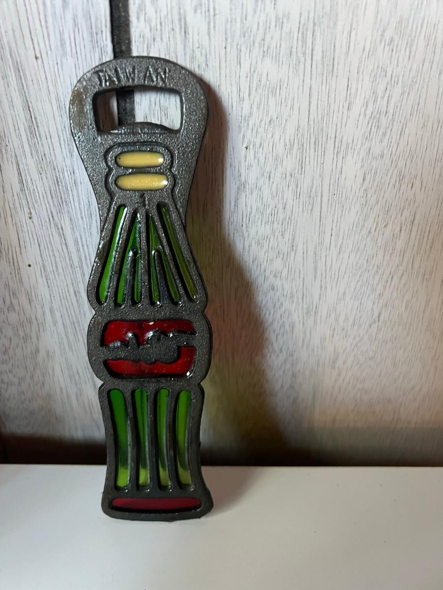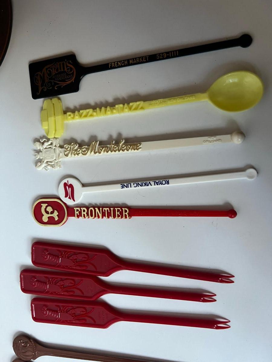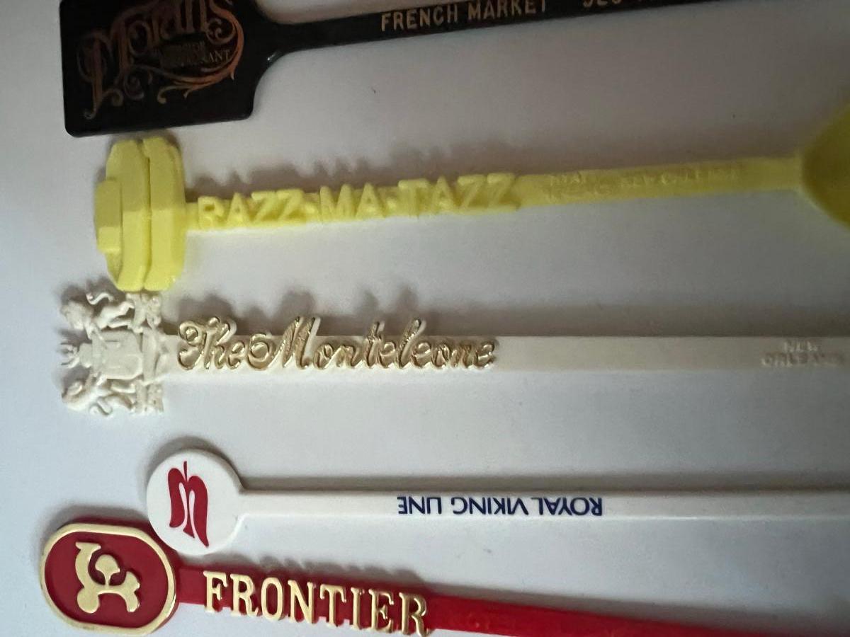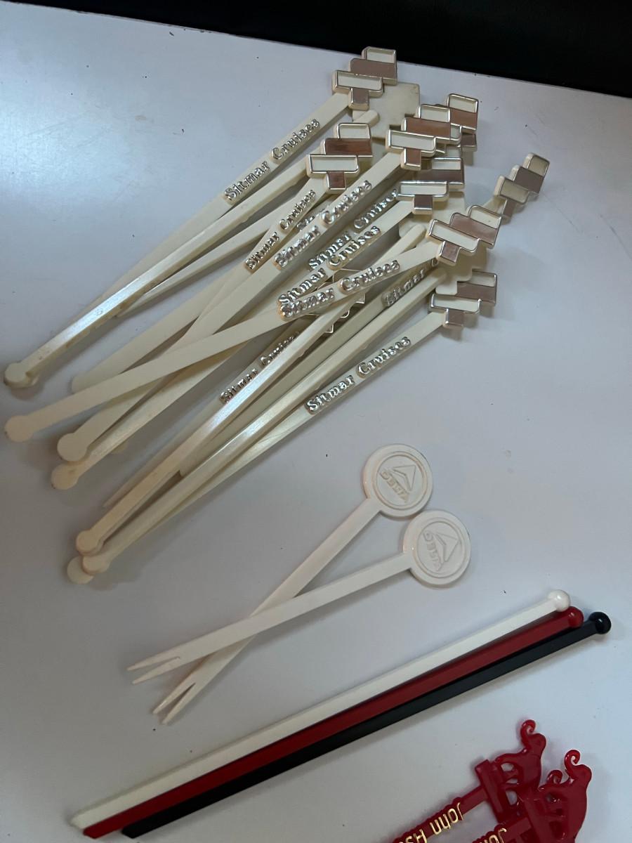Gilbey's Scotch Whiskey bottle empty large 19" x 5", coke bottle opener 7 1/4" x 2" and drink stir sticks