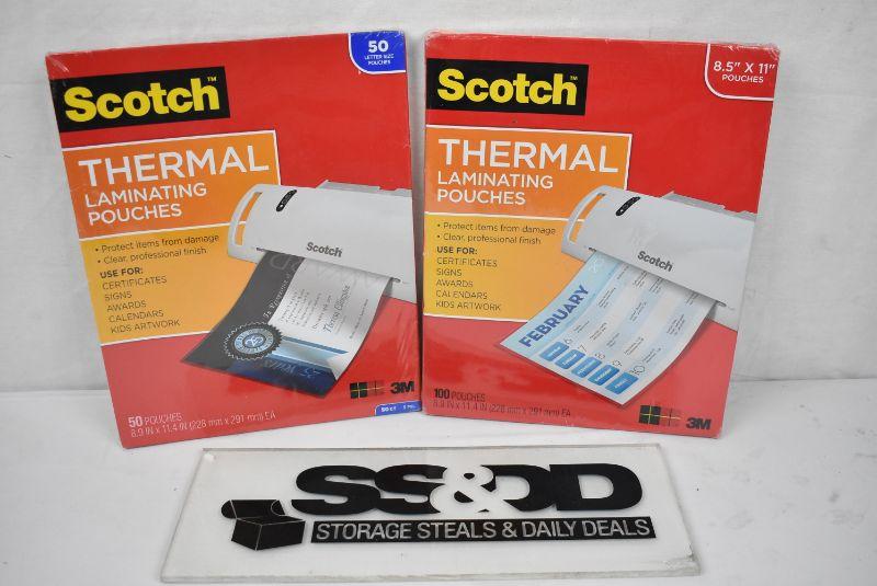Scotch Thermal Laminating Pouches. 1 pk of 50 & 1 pk of 100, $19 Retail - New