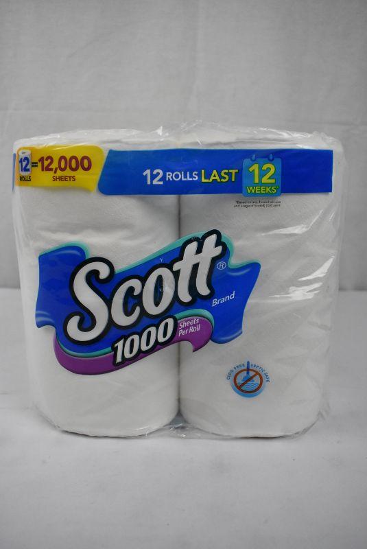 Scott 1000 Sheets Per Roll Toilet Paper, 12 Rolls, Bath Tissue - New