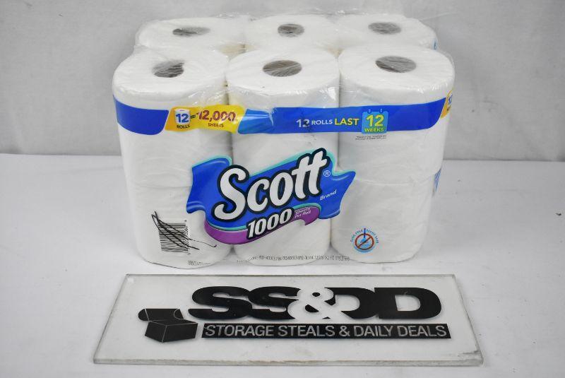Scott 1000 Sheets Per Roll Toilet Paper, 12 Rolls, Bath Tissue - New