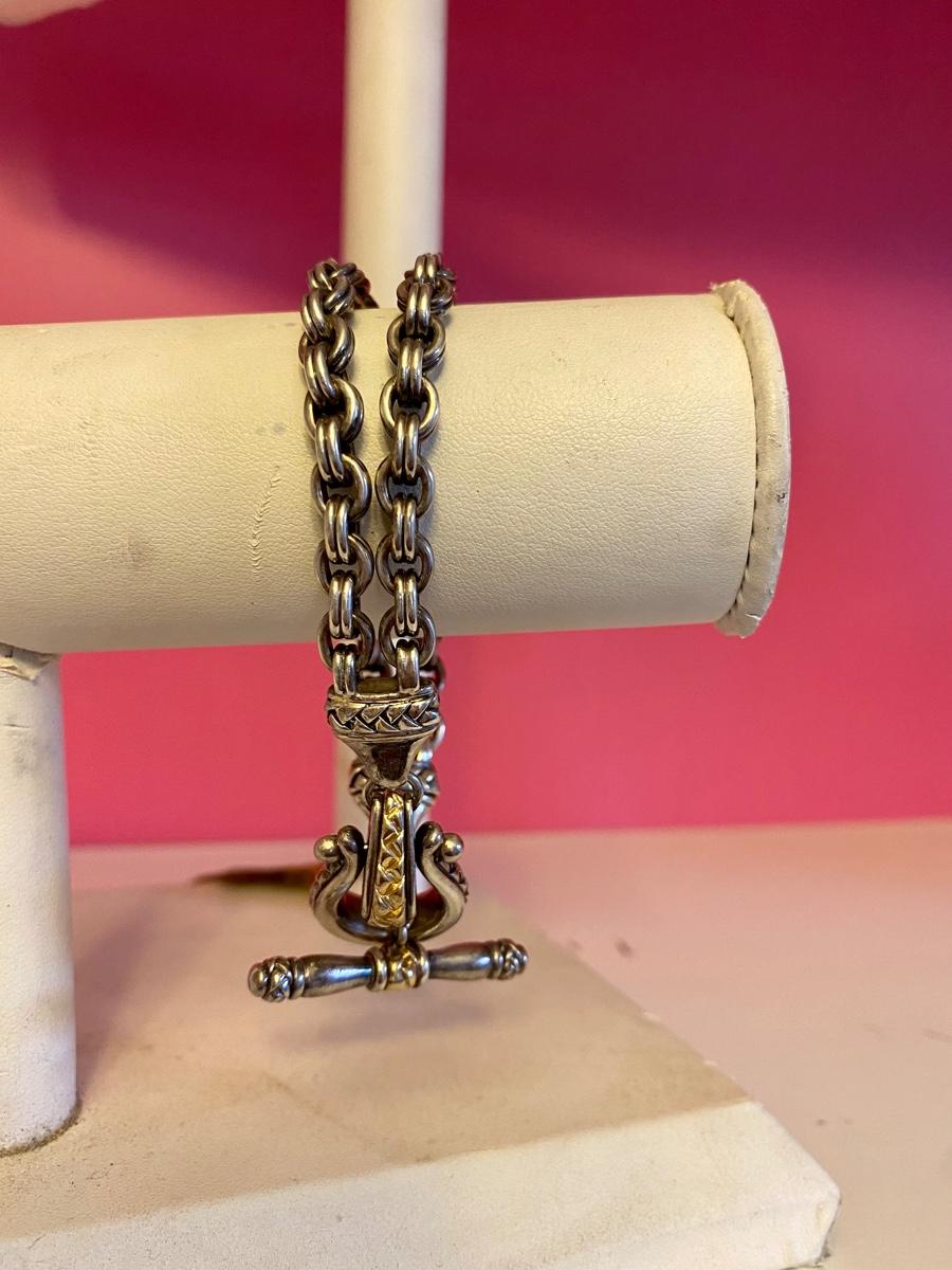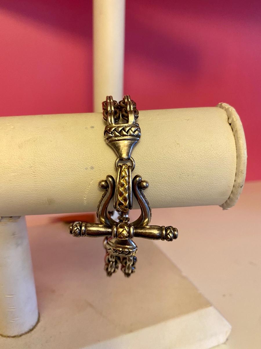Scott Kay Silver and Gold Rolo Woven Toggle Bracelet 925 Sterling Silver, 7.5"