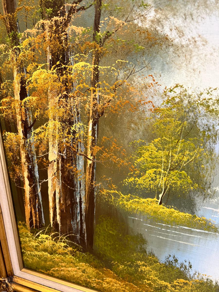 Gorgeous gilt frame. Beautiful painting peaceful landscape. Check out pictures of the canvas in back this painting has been repaired.