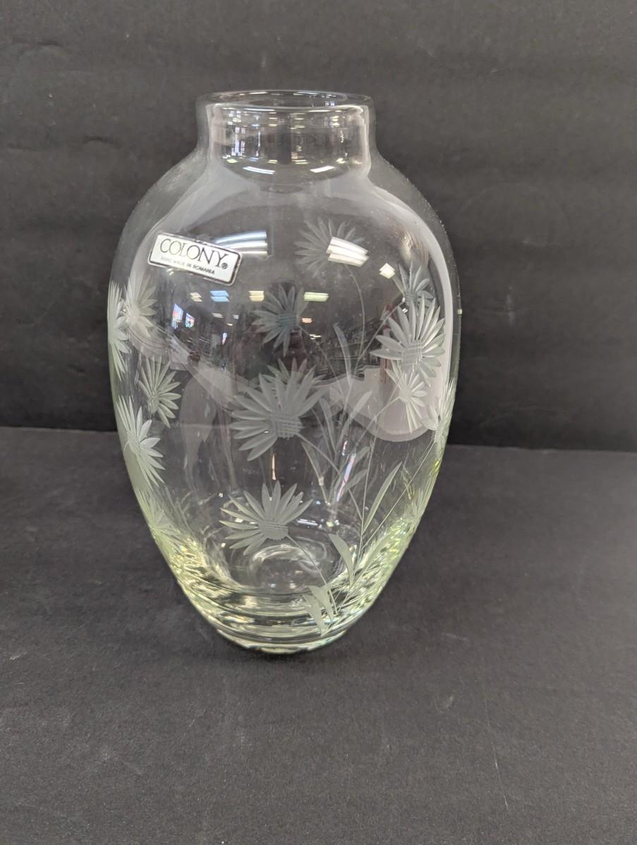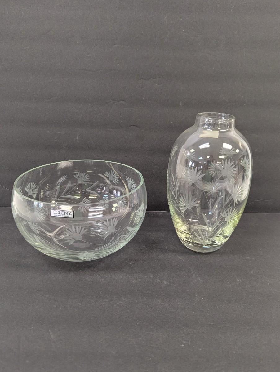 Scottish Thistle Colony Cut Glass Vase & Bowl Made In Romania