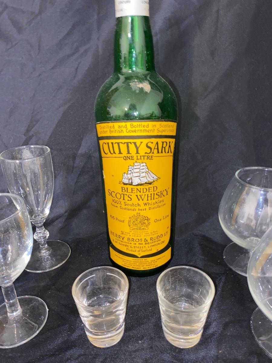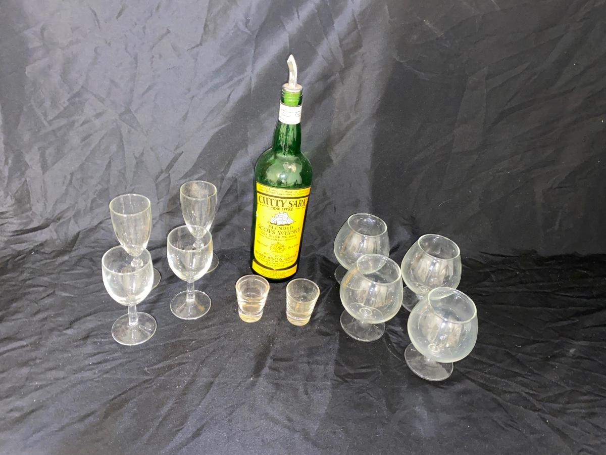 SCOTTISH WHISKEY BOTTLE AND ACCOMPANYING GLASSWARE
