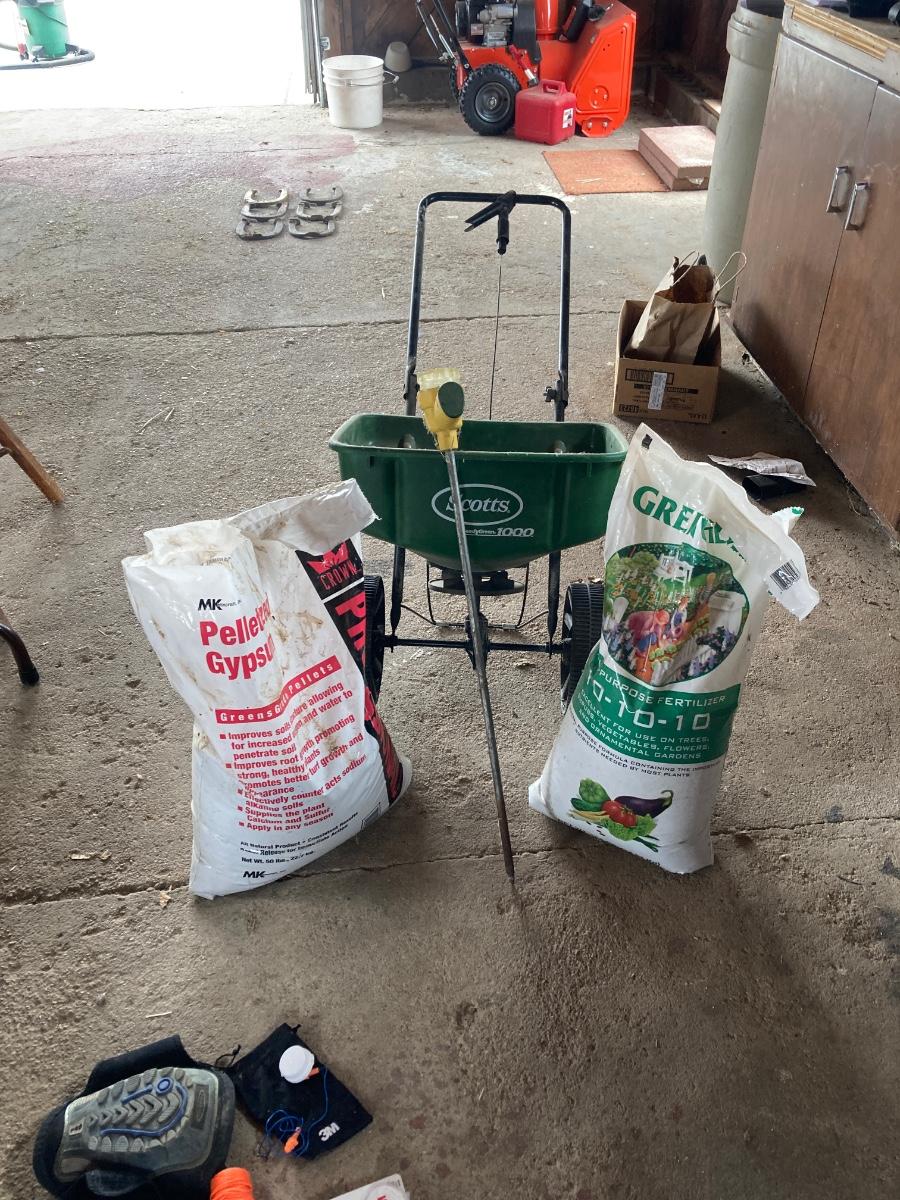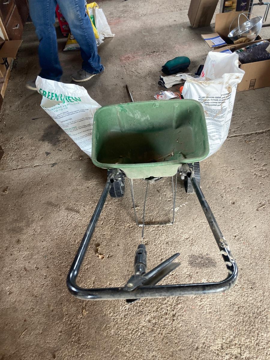 SCOTTS FERTILIZER SPREADER, FERTILIZER AND ROOT FEEDER WITH REFILLS