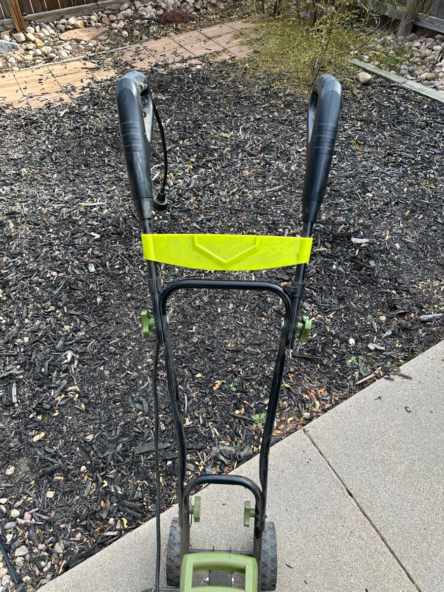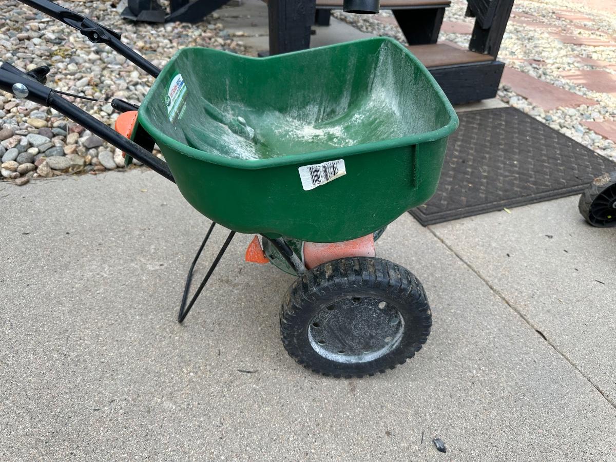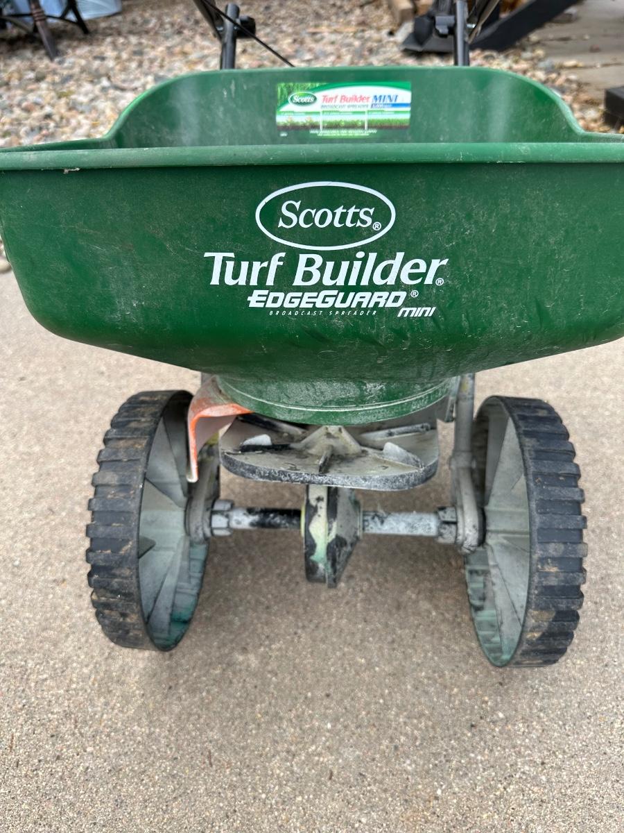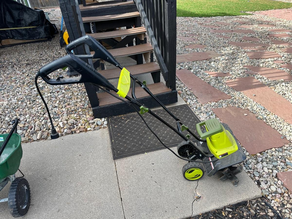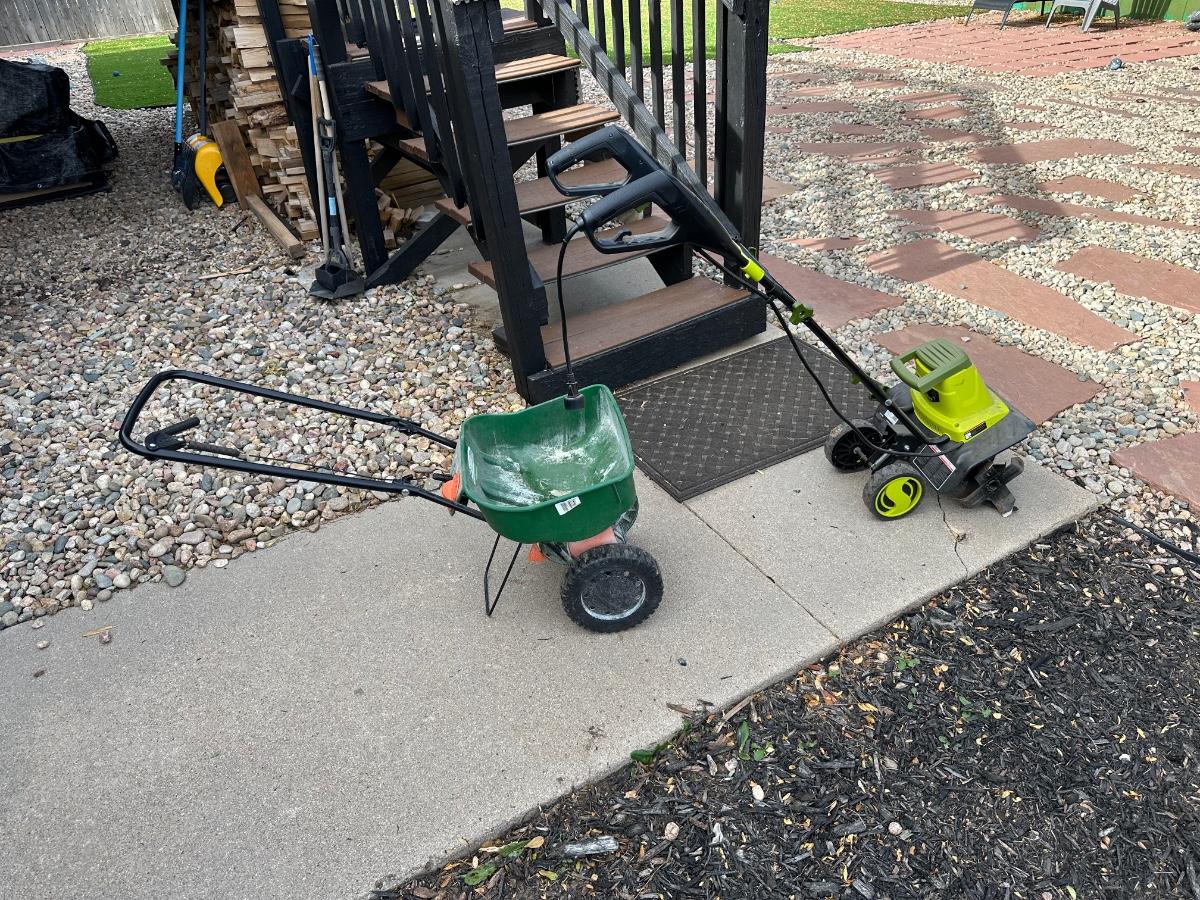 SCOTTS SPREADER AND SUNJOE ELECTRIC TILLER CULTIVATOR