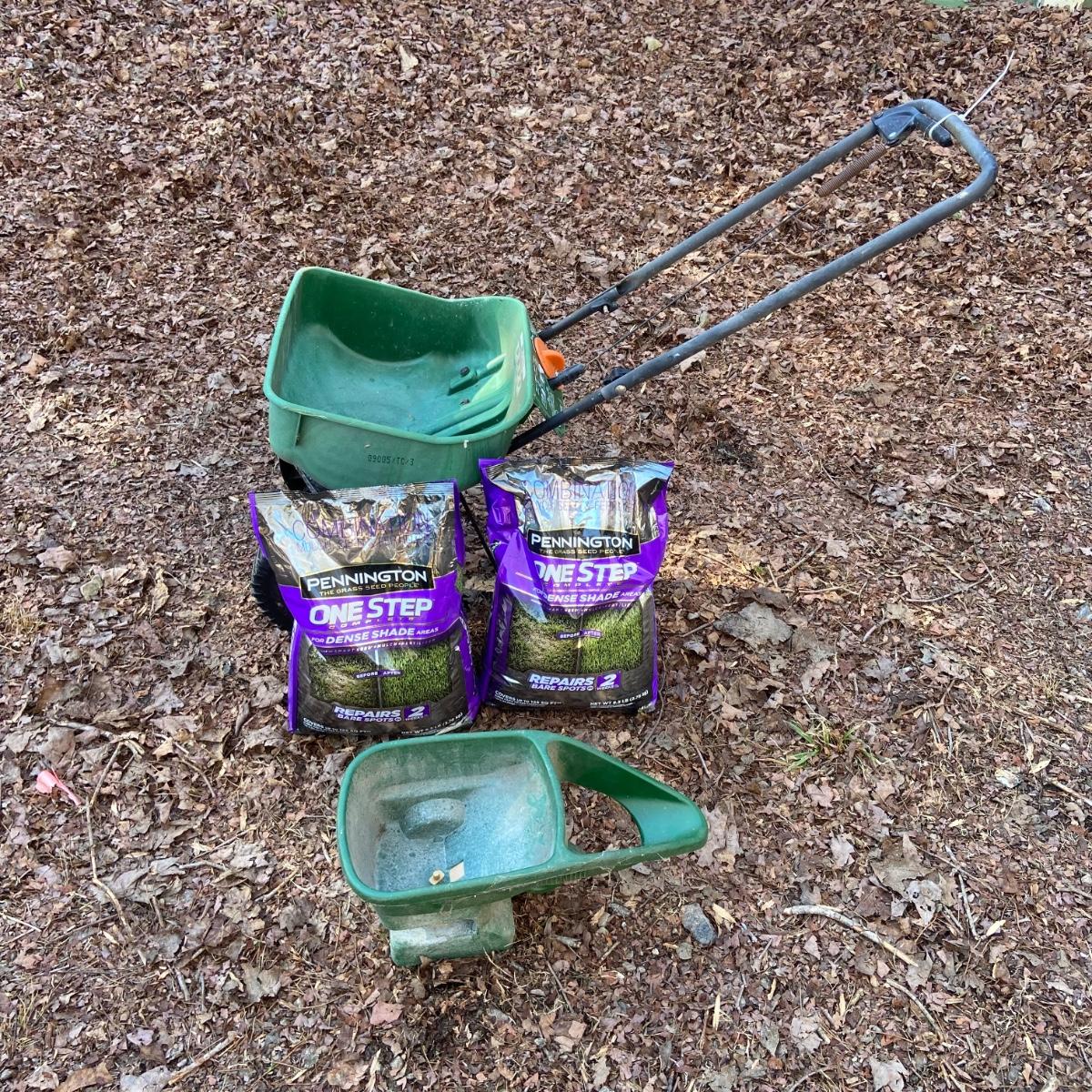 In this lot we have both a Scotts handheld spreader and Scott’s Turf Builder edge guard as well as two bags of grass seed. The handheld spreader measures 8” x 17” x 8.5”H. The turf builder measures 15.5” x 37” x 28”H (at highest point). The two bags of grass seed are both 8.3lb Pennington “one step complete”. Local pick up only.