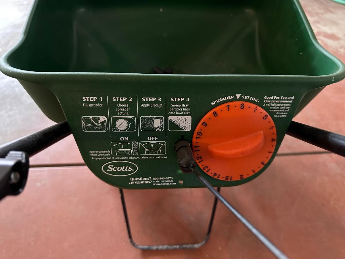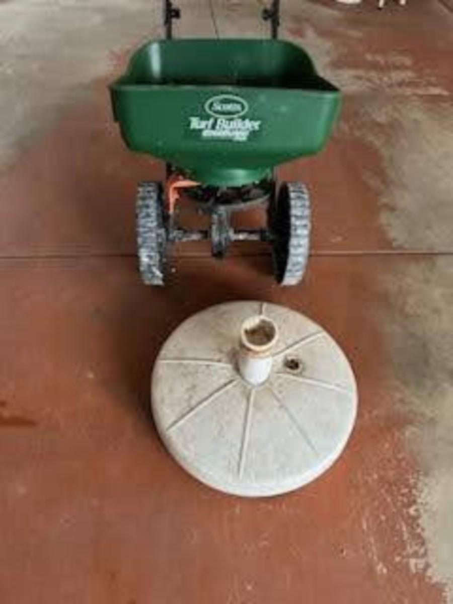 SCOTT'S WALK BEHIND SPREADER AND UMBRELLA STAND
