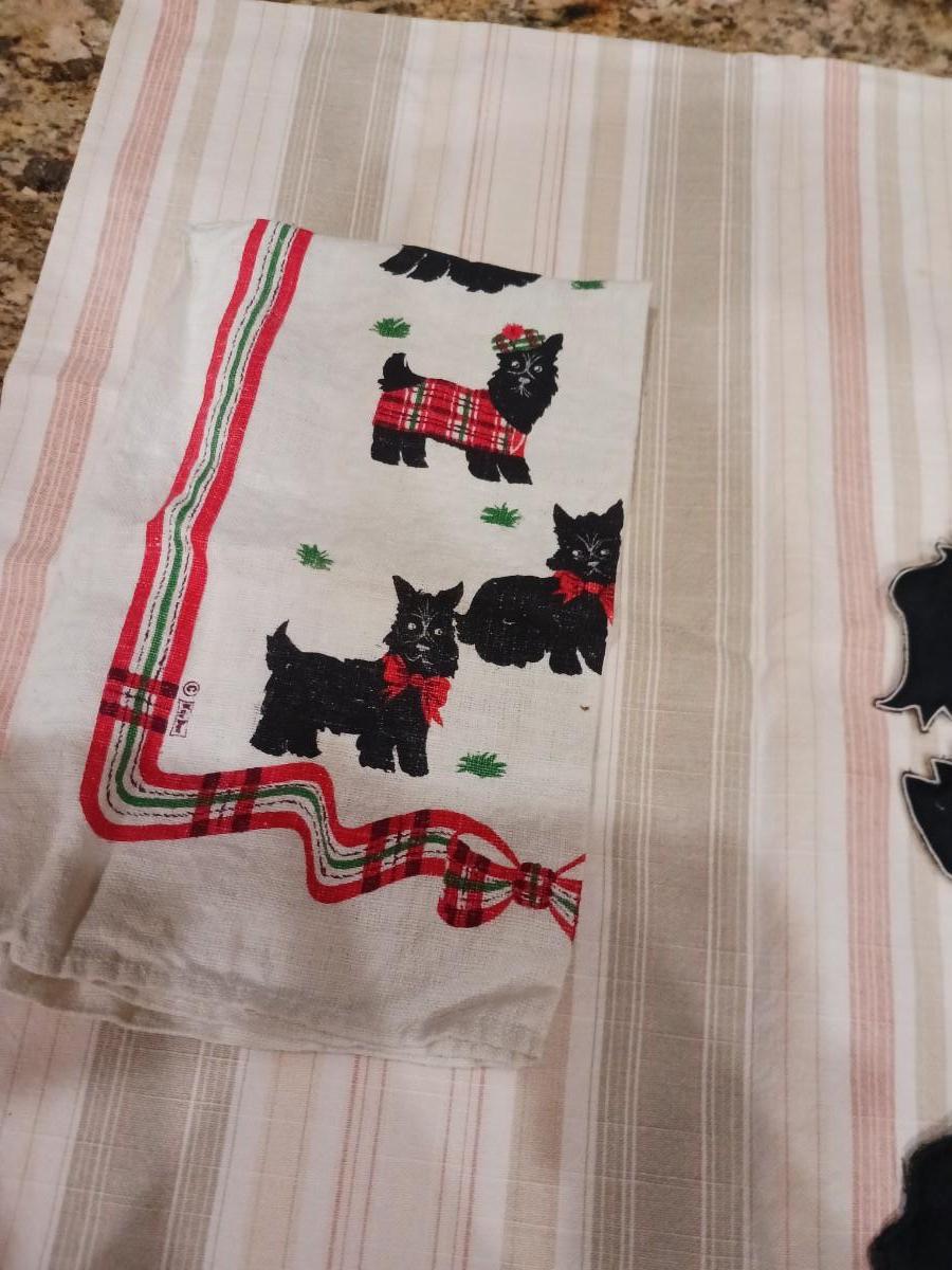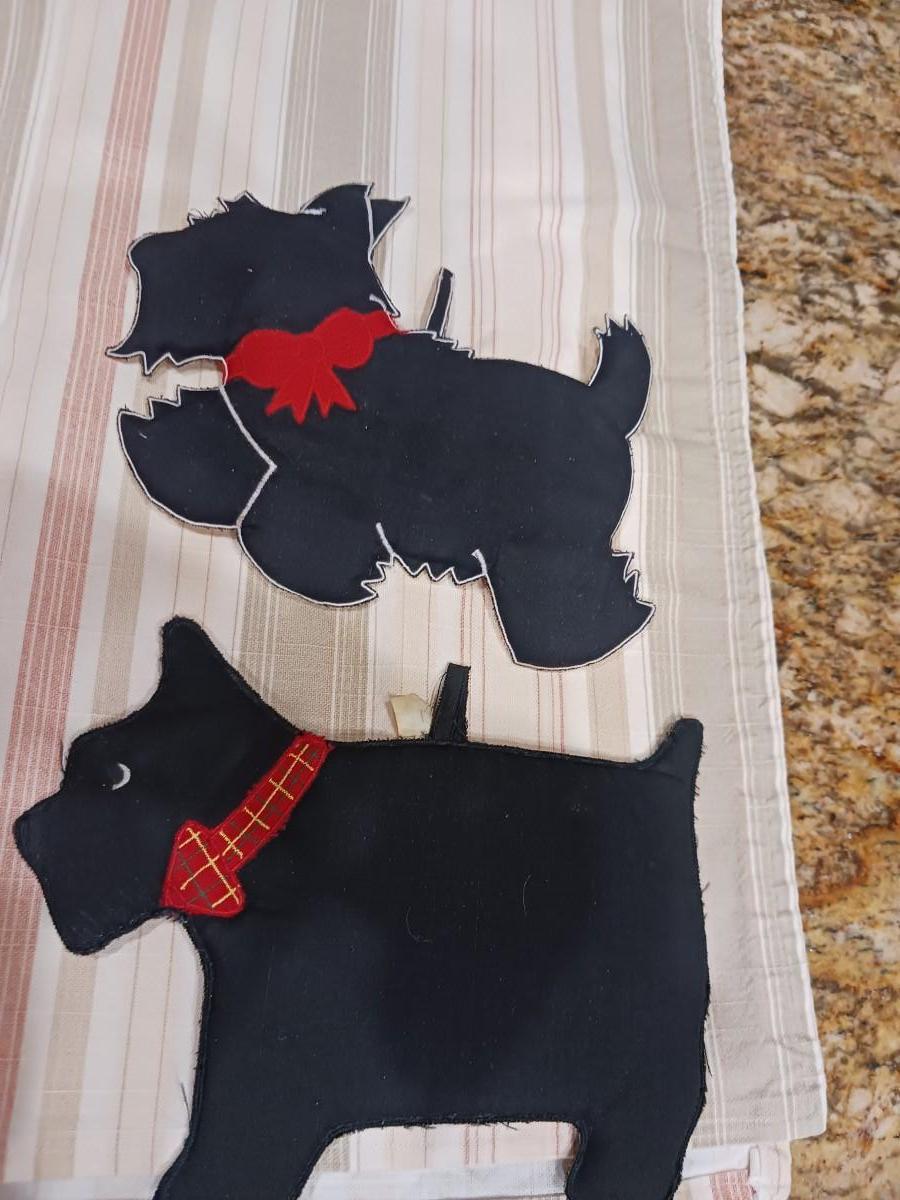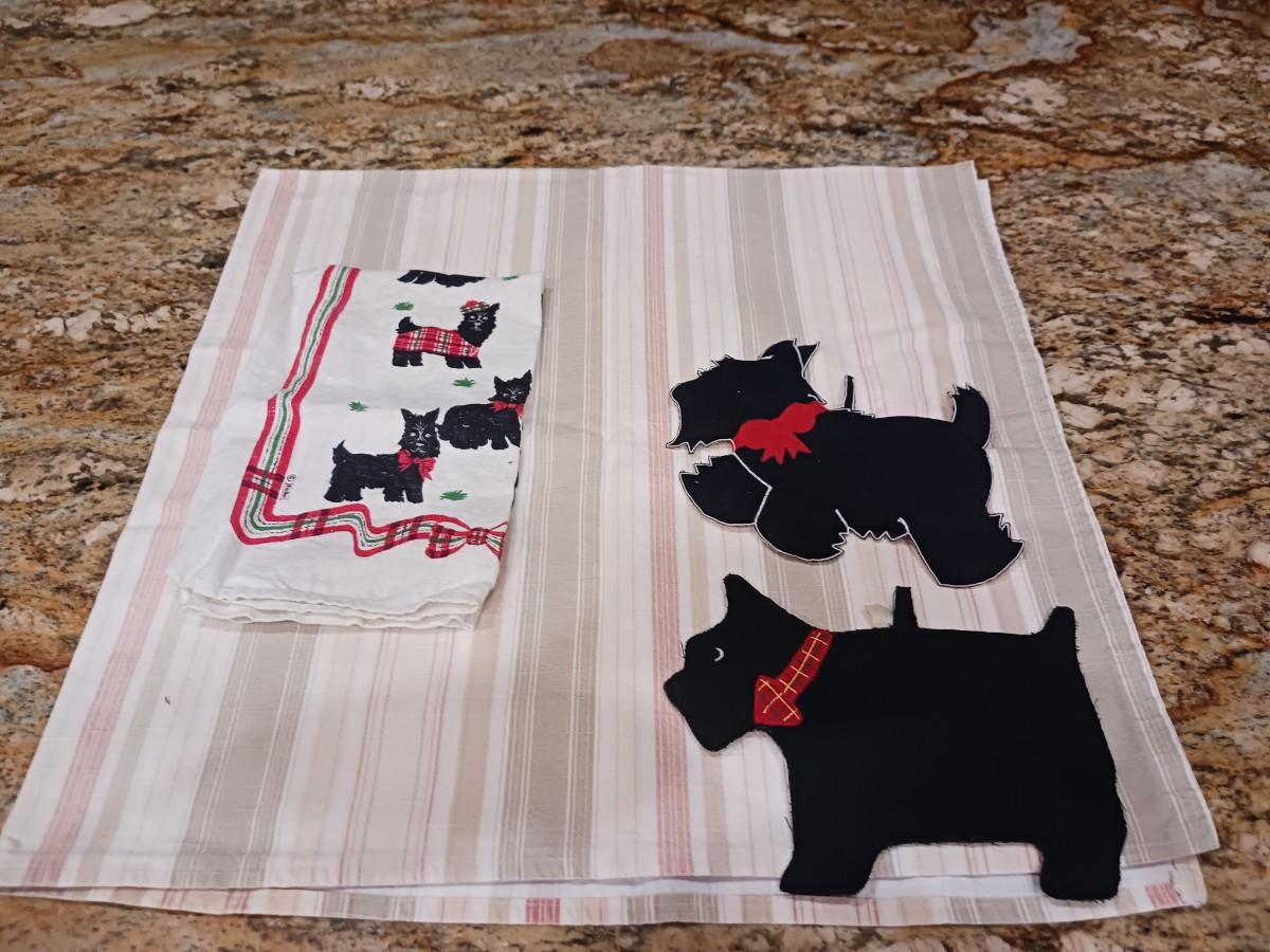 SCOTTY DOG POT HOLDERS AND DISH TOWEL PLUS TABLECLOTH