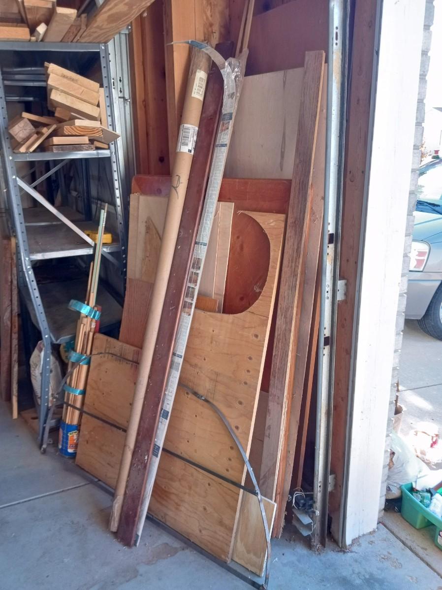 SCRAP LUMBER AND 2 NICE BIG TREE SLABS