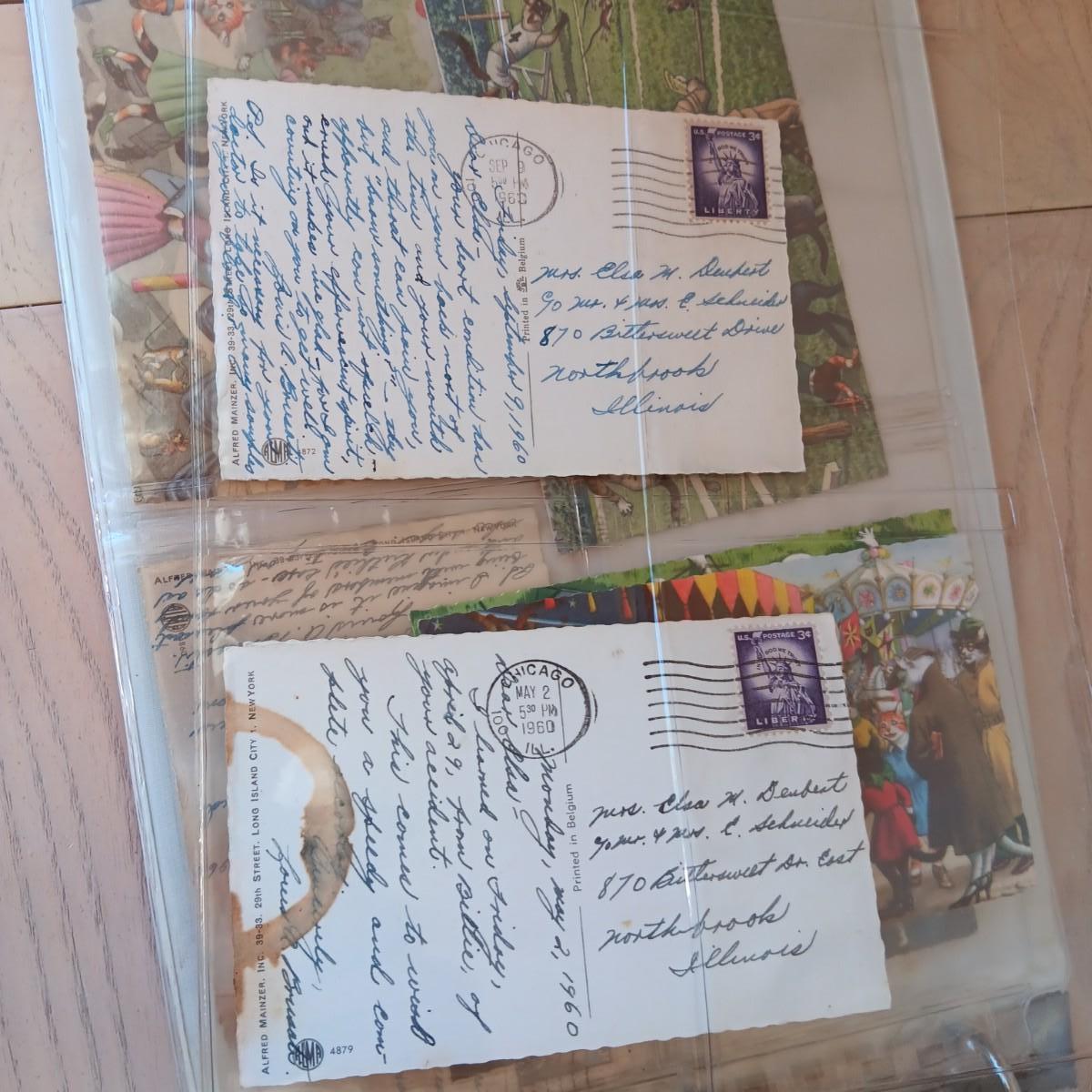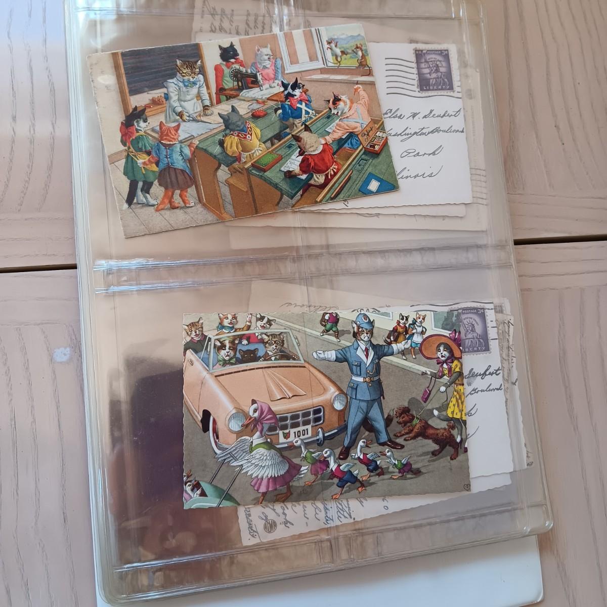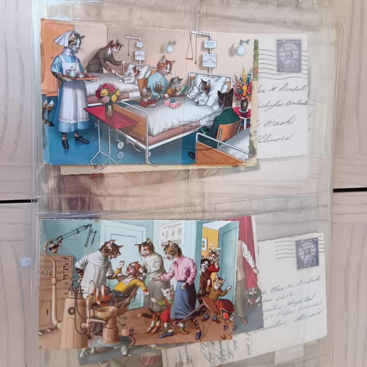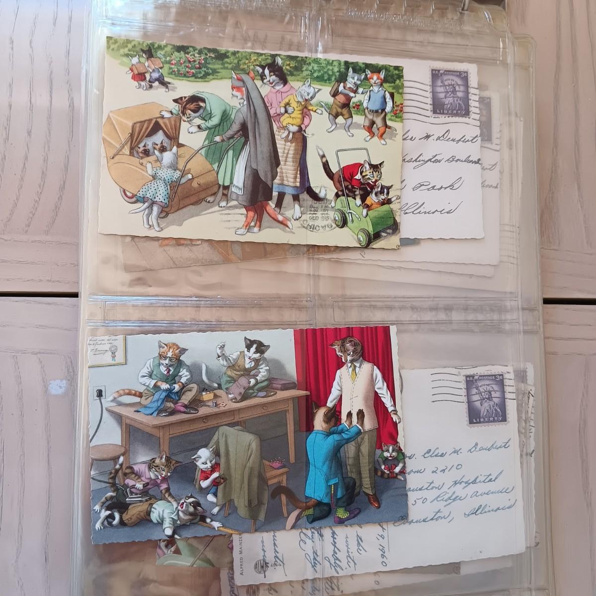 SCRAPBOOK COLLECTION OF CAT POSTCARDS FROM 1956-1960
