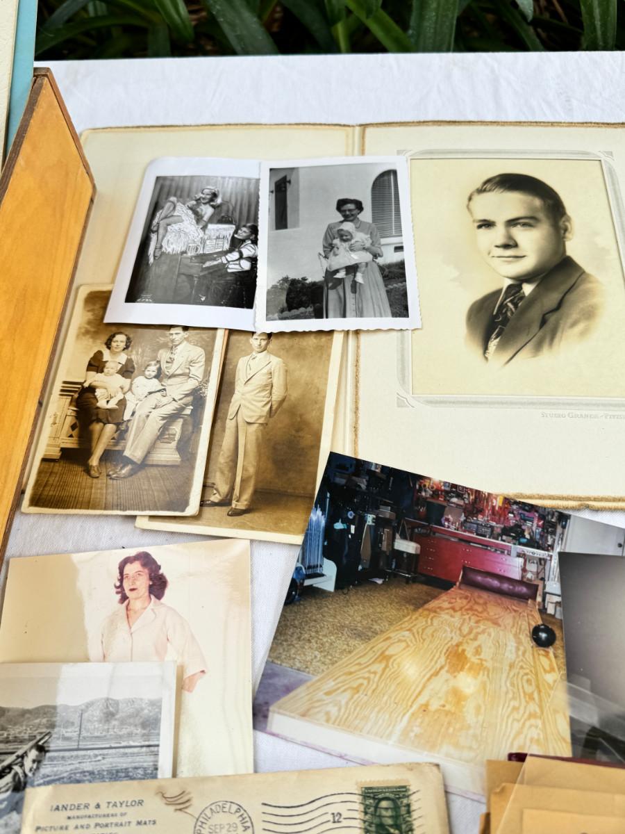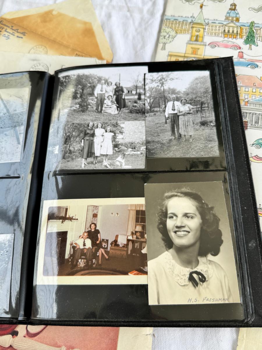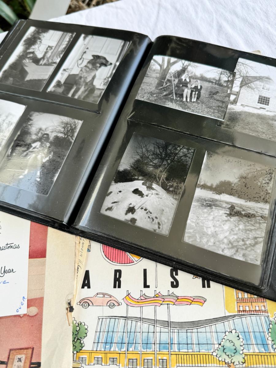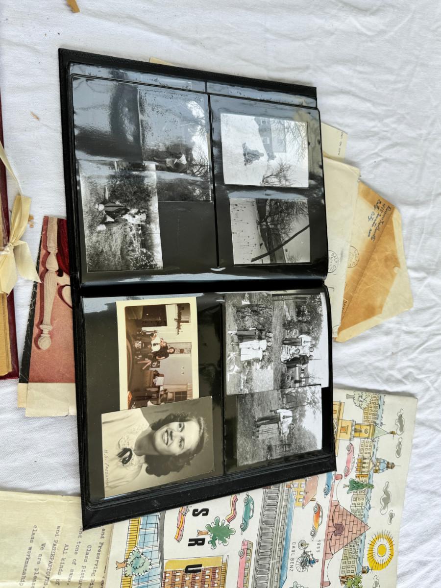 Scrapbook, photographs, photo album, handwritten letters and cards