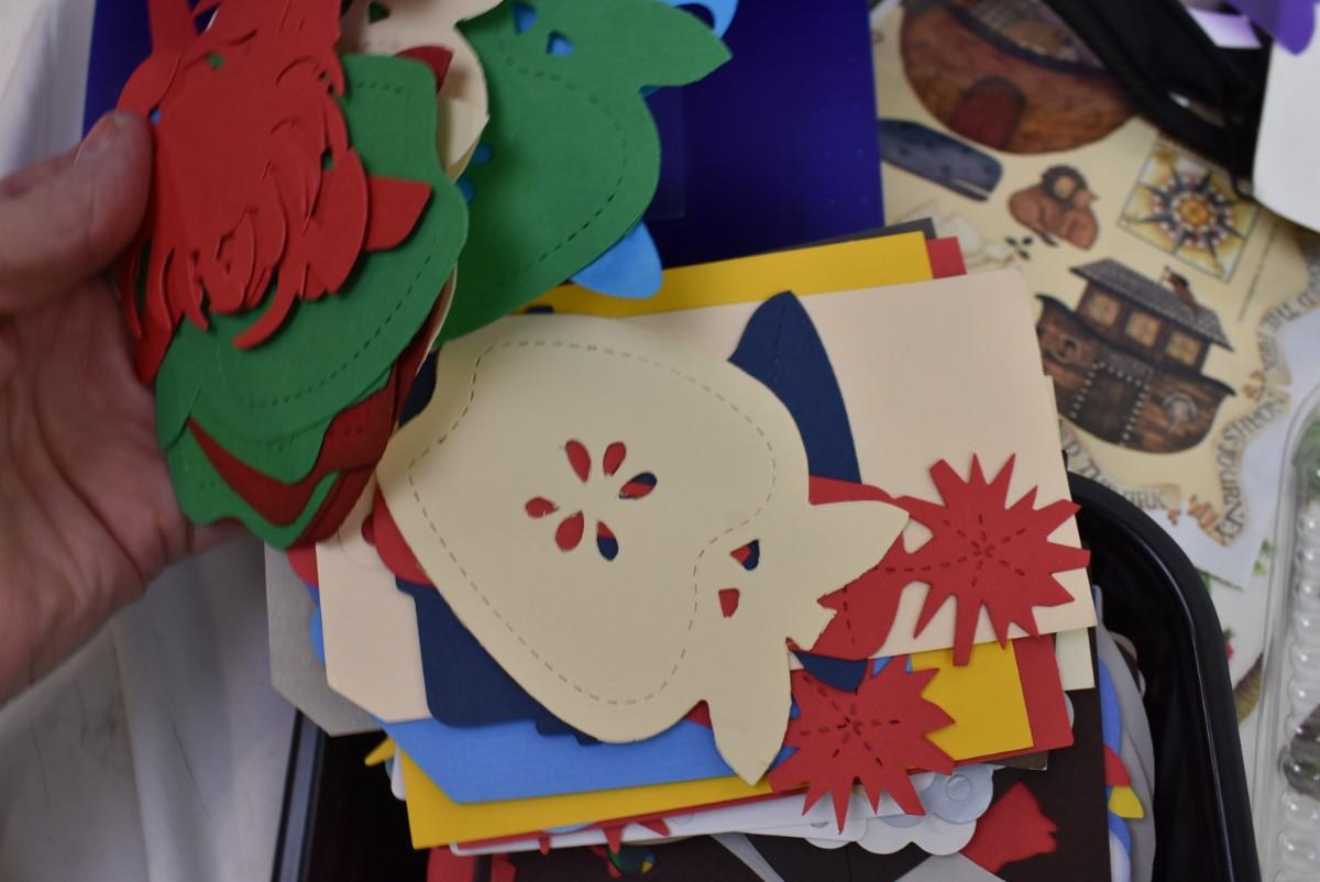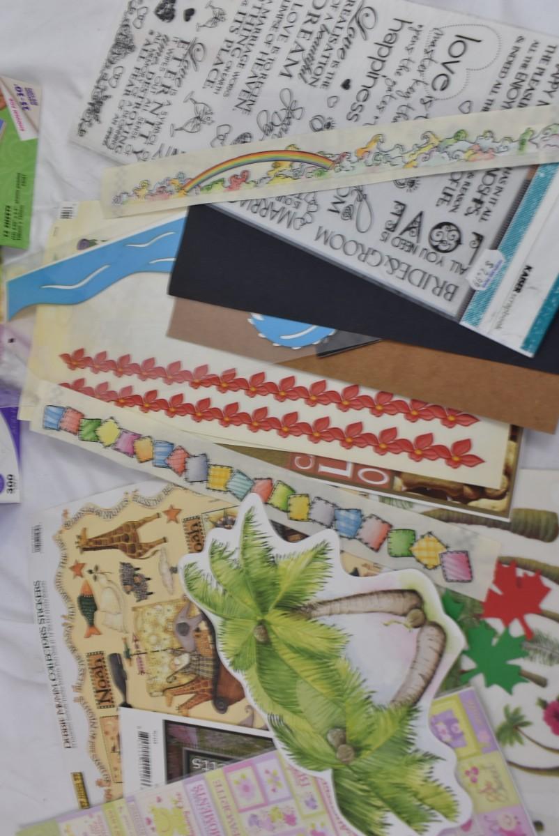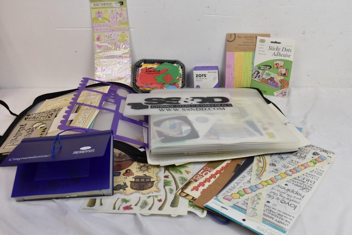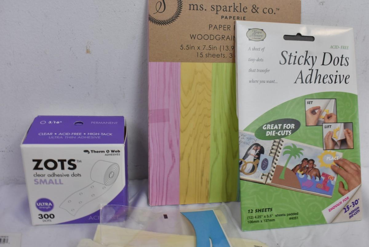 Scrapbooking Lot: Paper, Stencils, Die Cuts, Scissors, Stickers, ZOTS adhesive