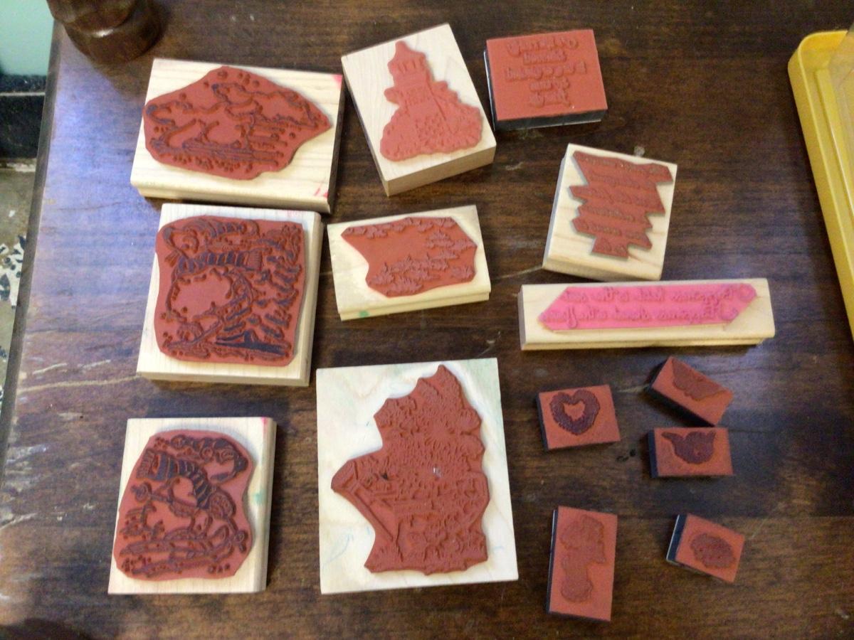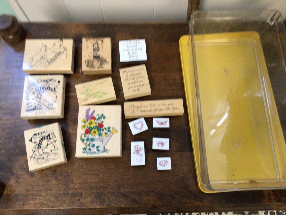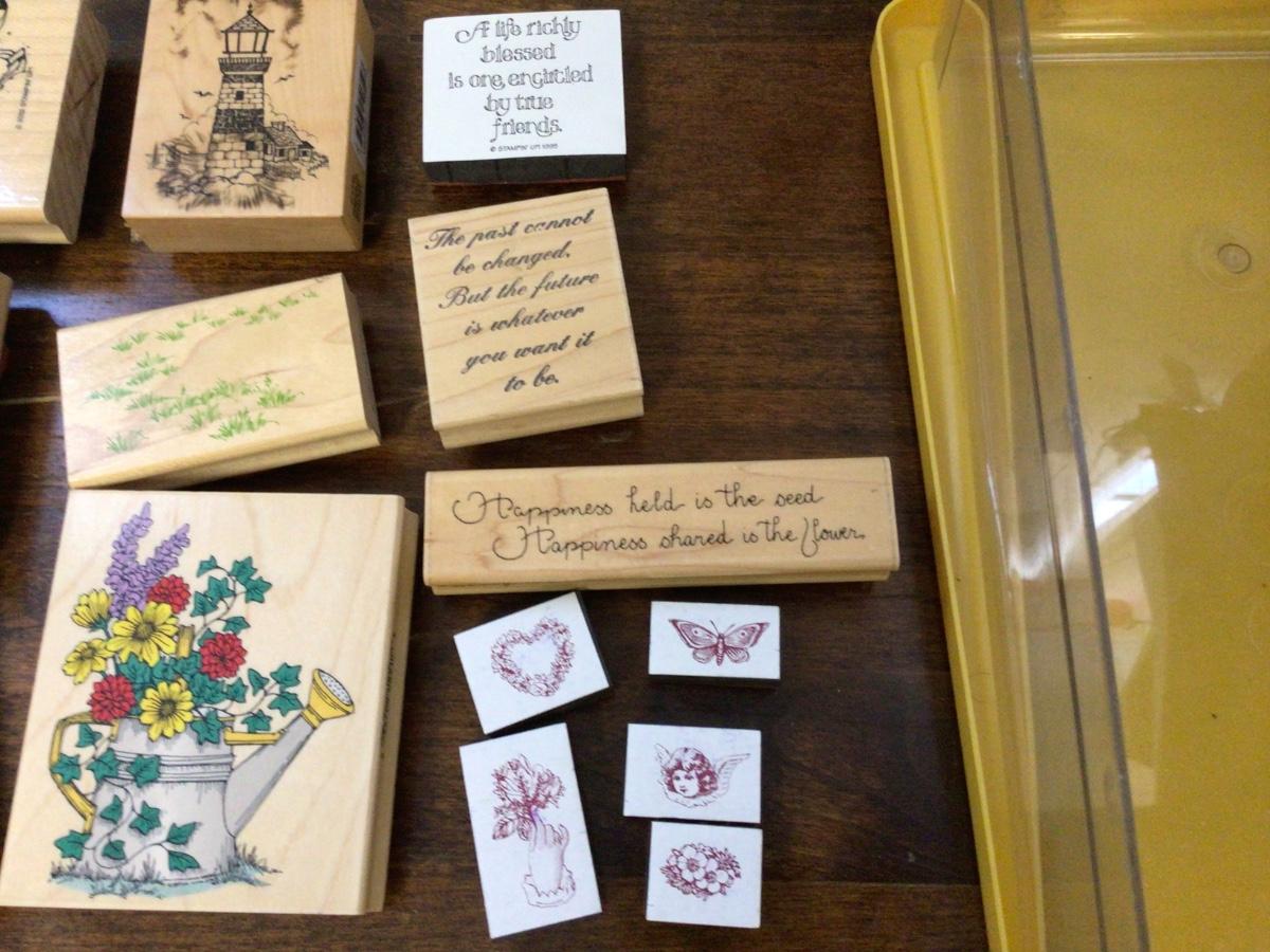Here is a great lot of scrapbooking rubber stamps. Some new other gently used. Some are scenes others are saying. You even get the tote to hold them and more.