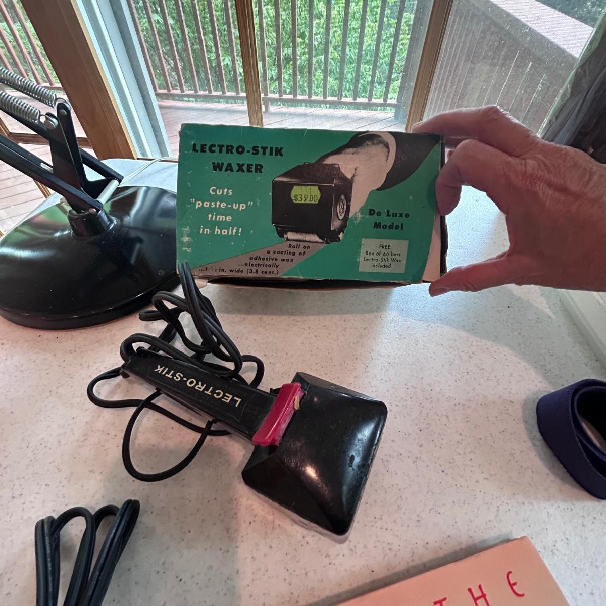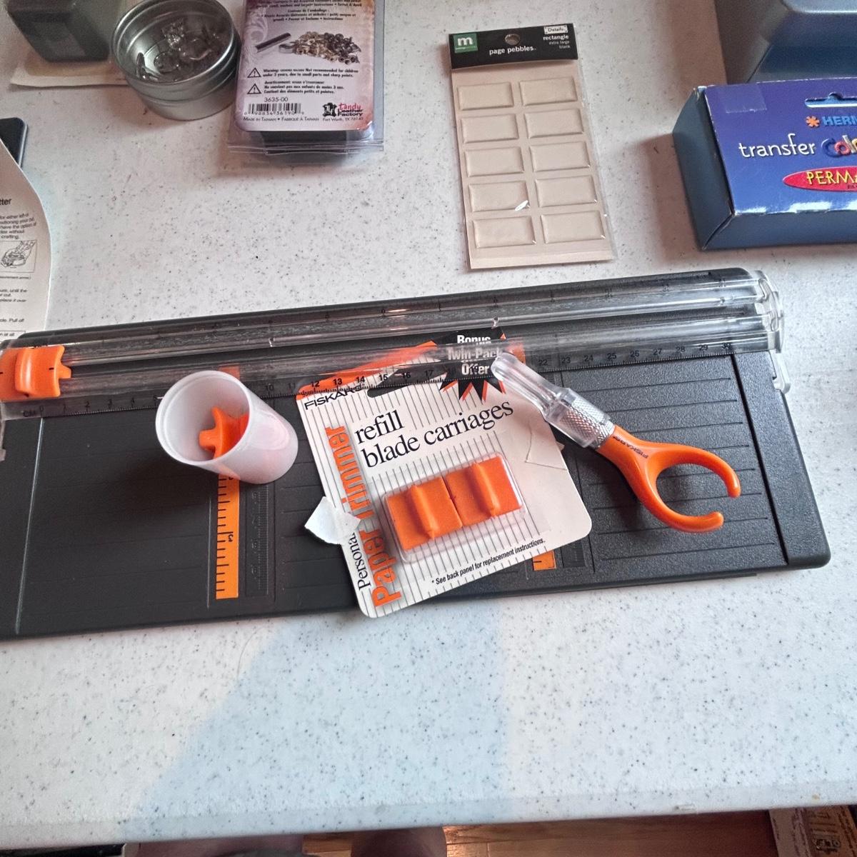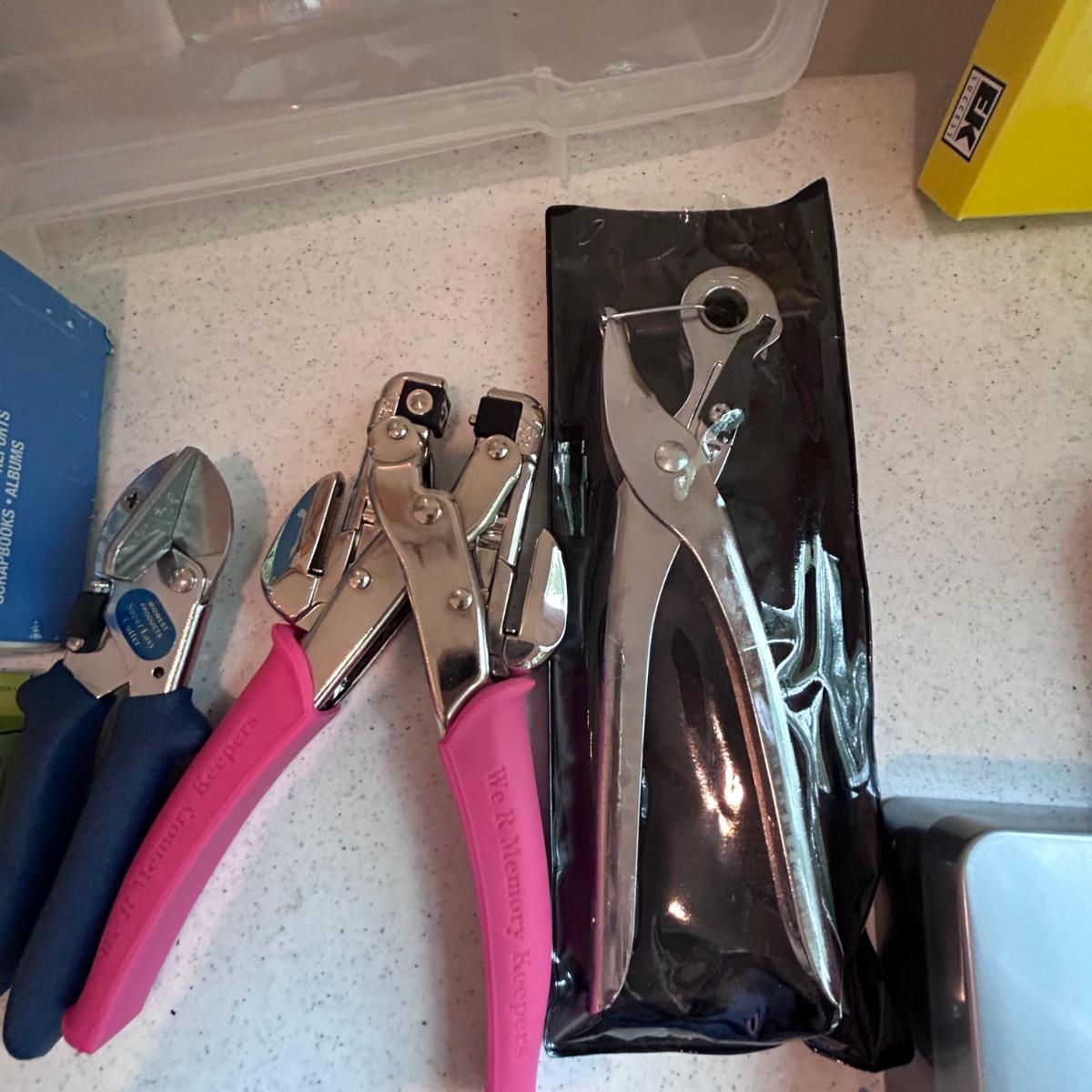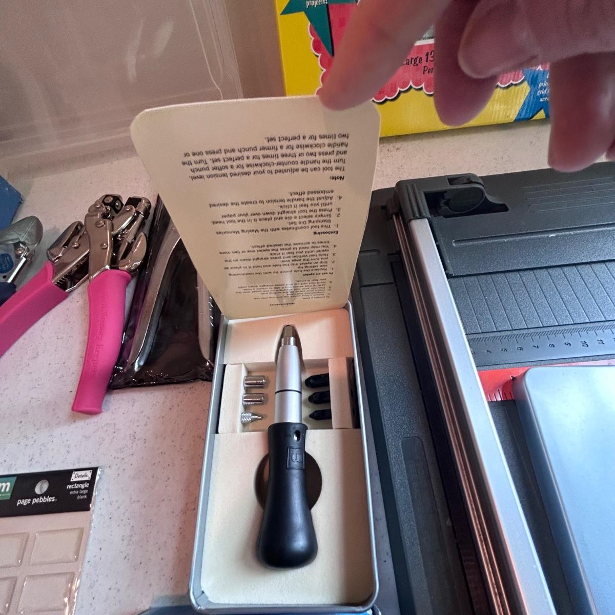Here are all the basics to start that scrapbook making you always wanted to try. There are cutters like the Fiskars Desktop Rotary paper cutter, hole punches like the Crop a file Hole punch, glass mat, circle cutter with mat, ornamental detailing, Lectro Stik waxer and more. The mini iron powered on when plugged in. The Lectro Stik did not, but does come with a troubleshooting guide. Local pick up only.