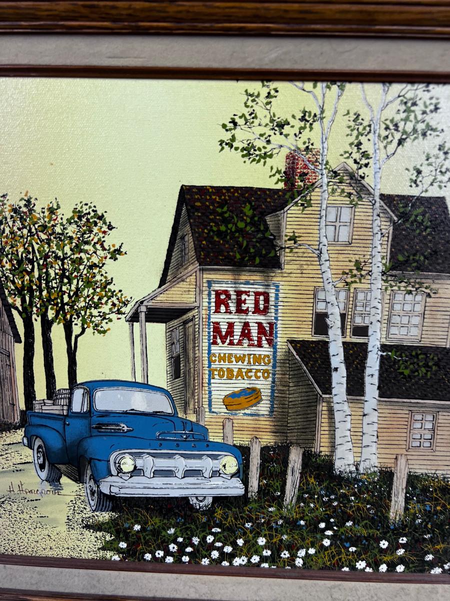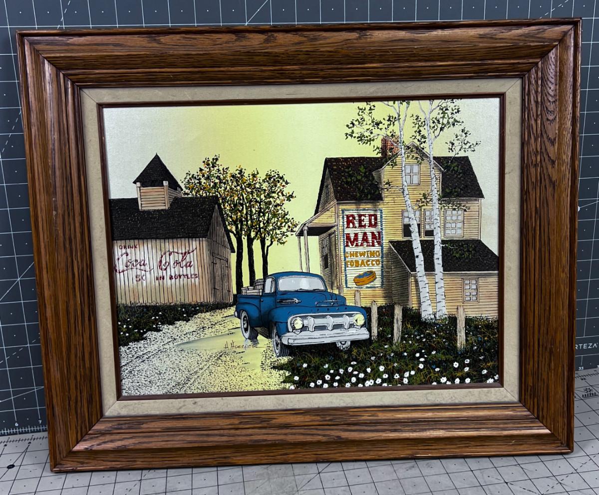Screen Print On Canvas Red Man and Old Truck, With COA