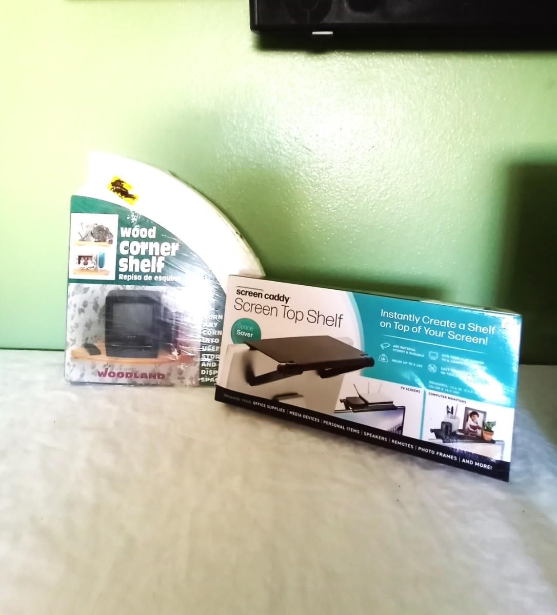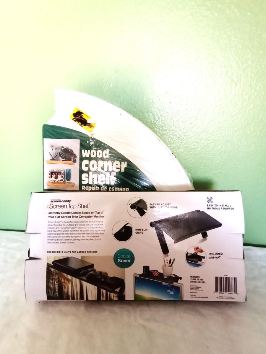 SCREEN TOP SHELF AND WOOD CORNER SHELF
