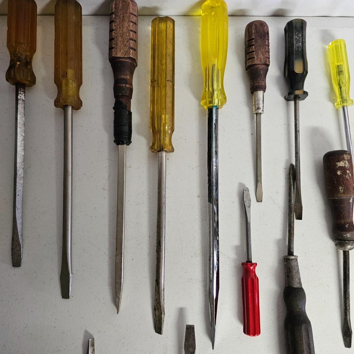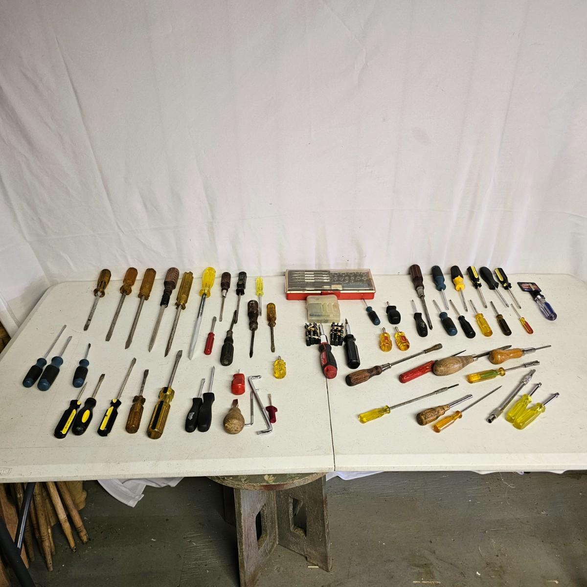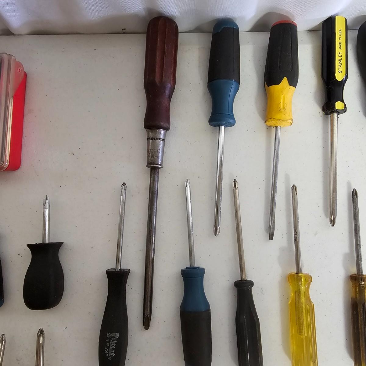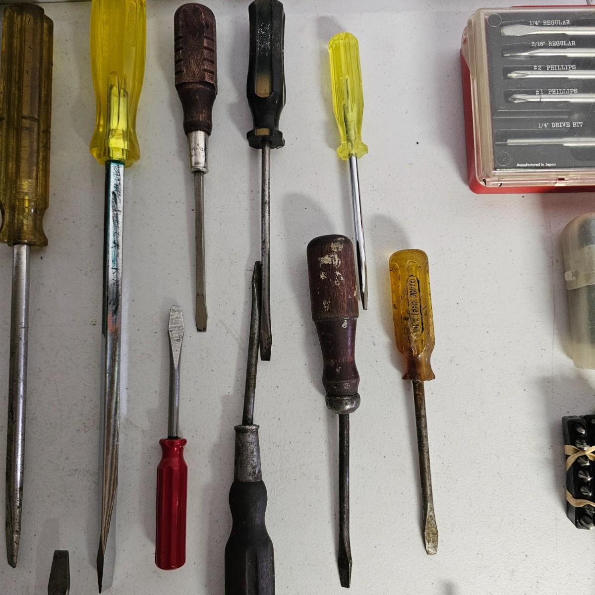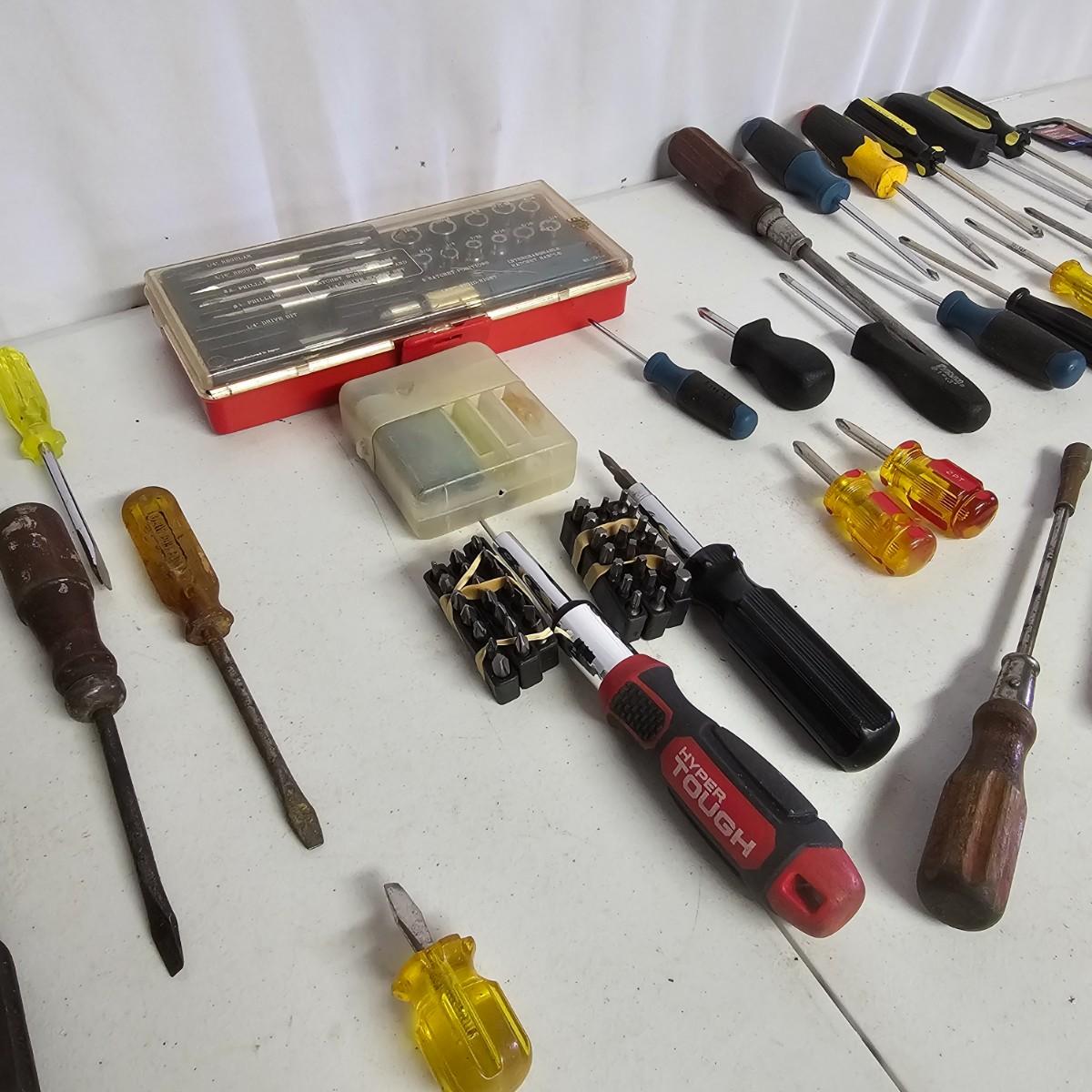 This screwdriver lot includes Philips, common and some specialized items as well. All different lengths and blade sizes to fit the job. Lengths range from 3" to 15". A couple combo sets with socket heads, and two groups of security bits with handle. See photos for details. Local pickup only.