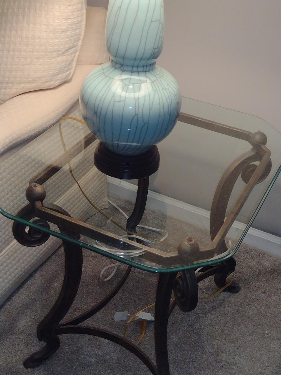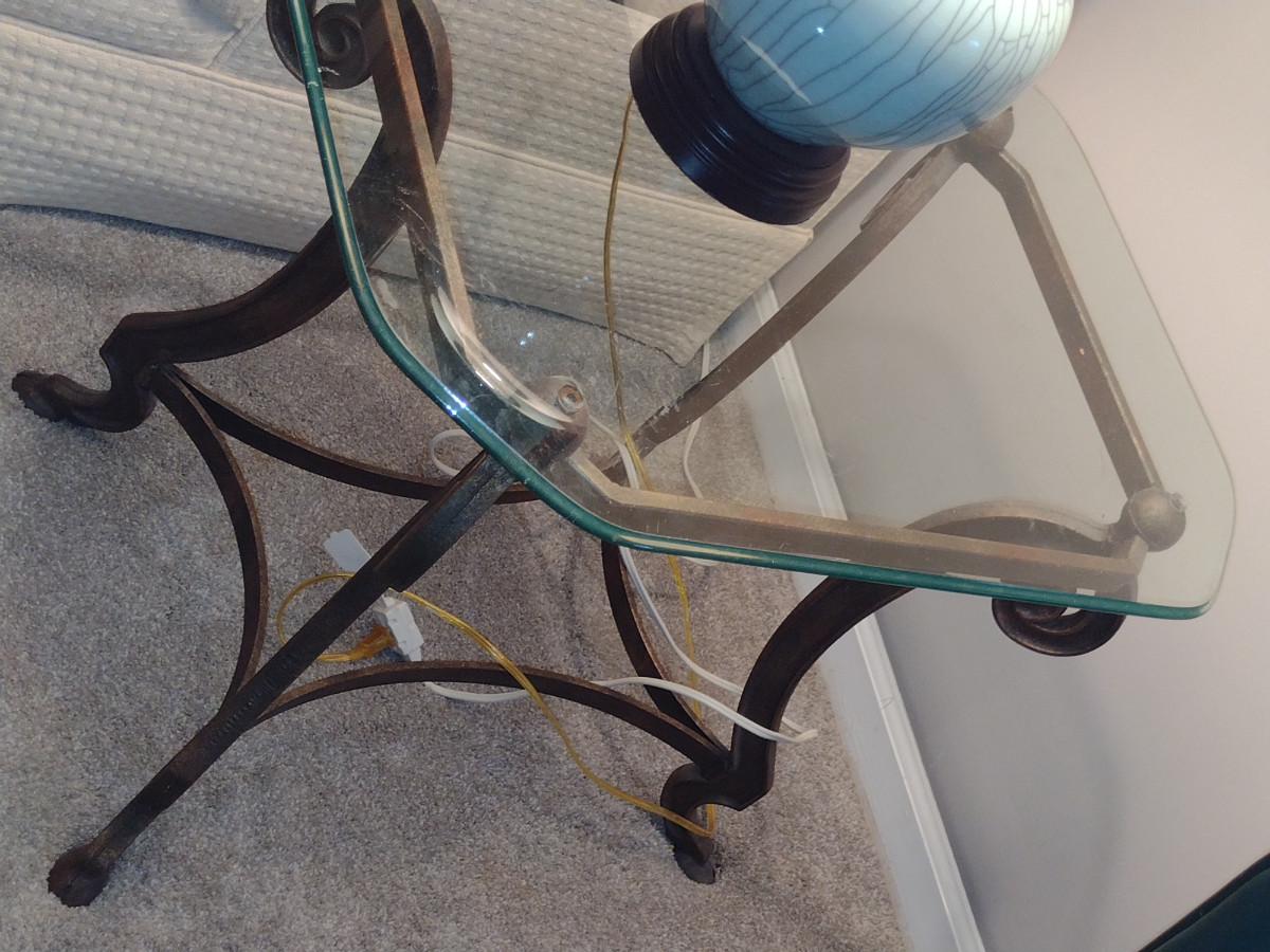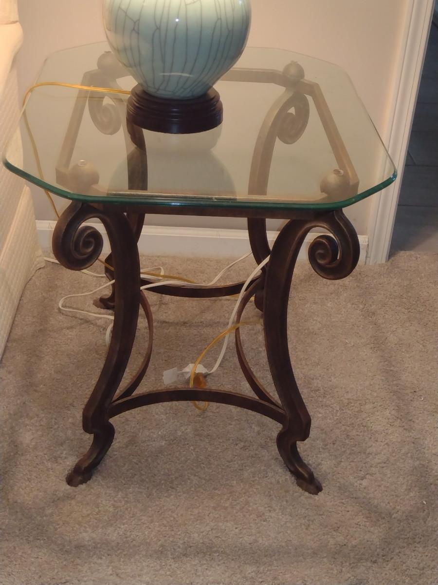 Scroll Design Metal Frame Side Table with Glass Top- Approx 22 1/4" x 28" x 23" Tall