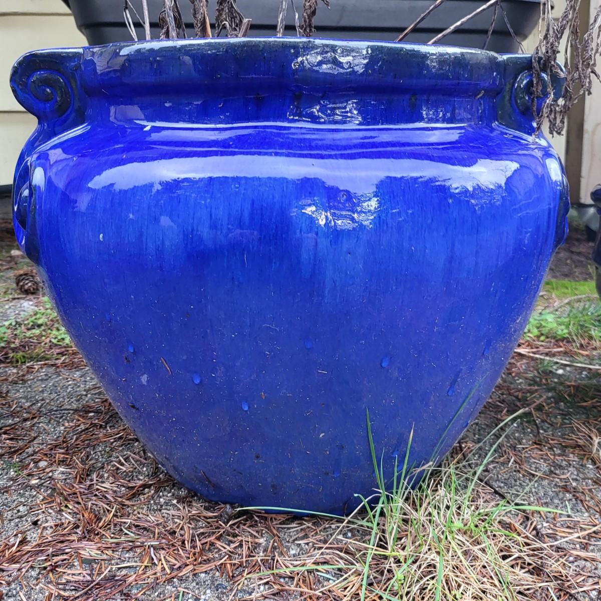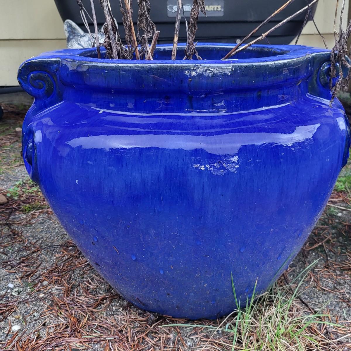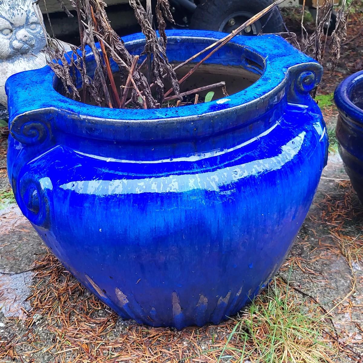 Scroll Handle Cobalt Blue Outdoor Pottery Planter