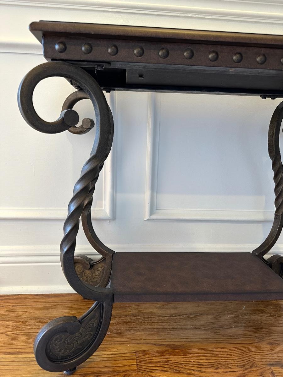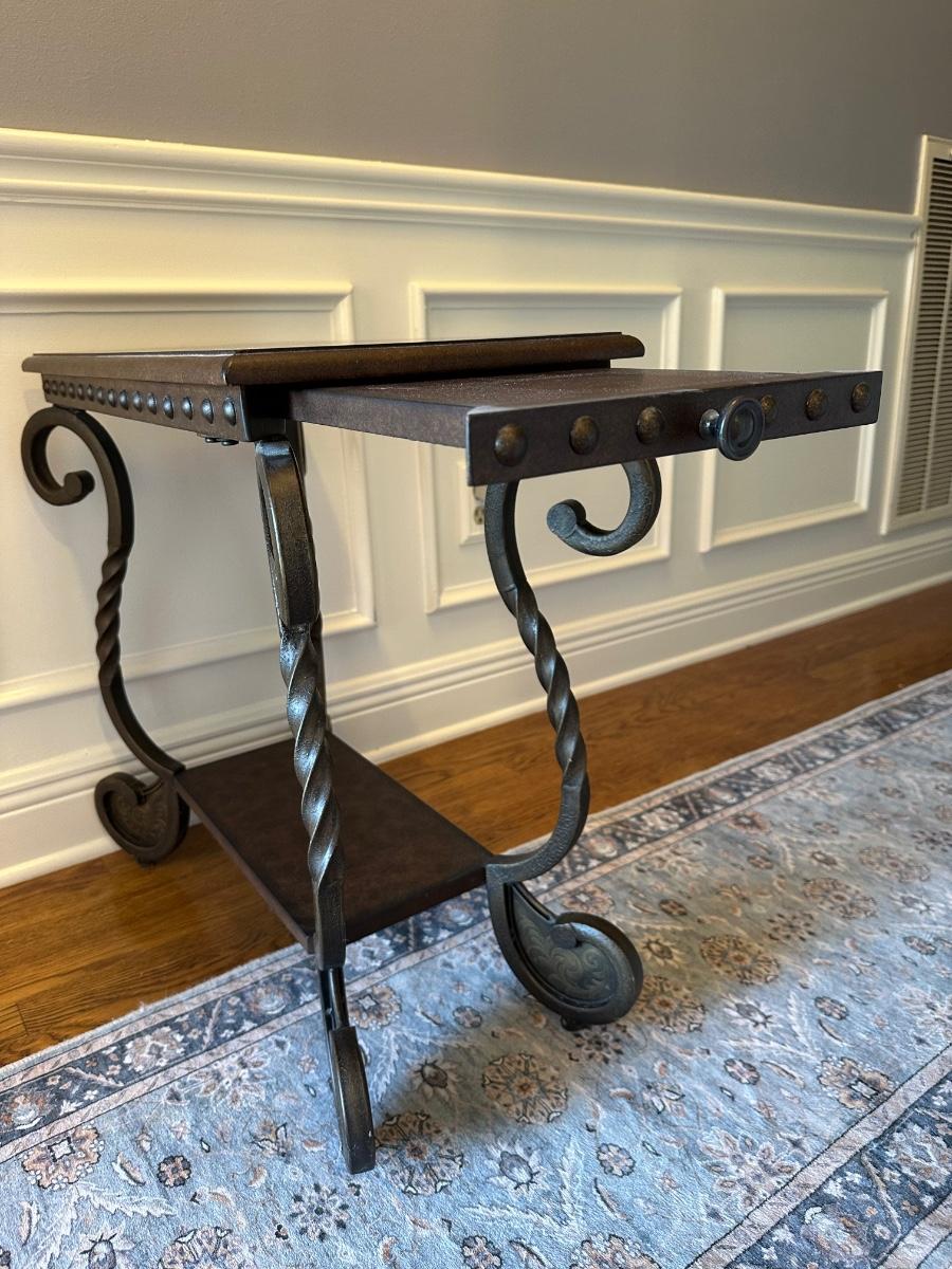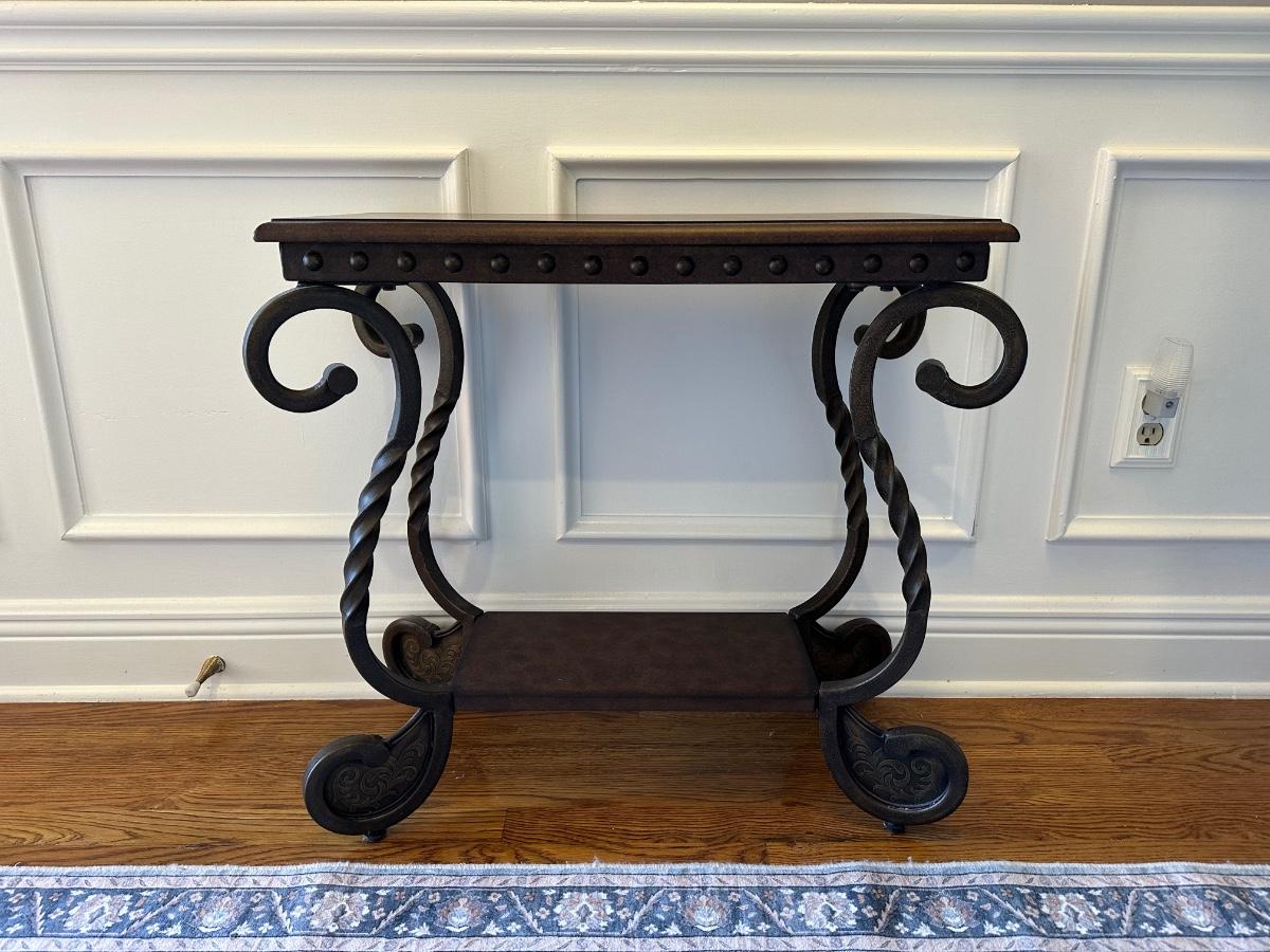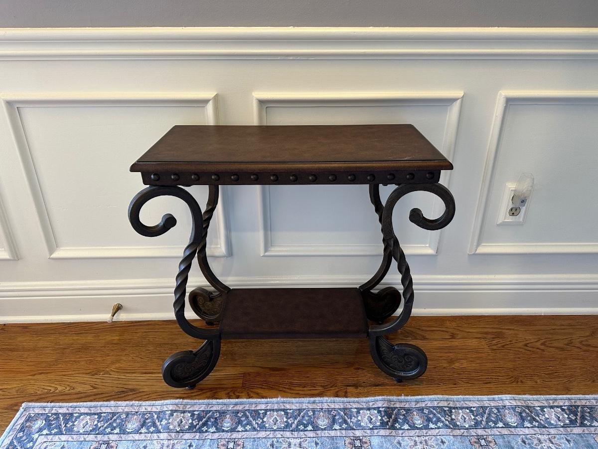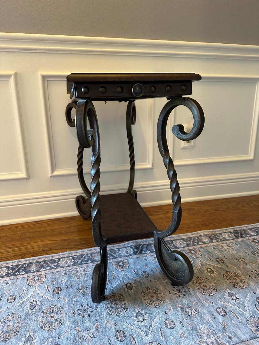 Scrolled Iron and Wood Accent Table
