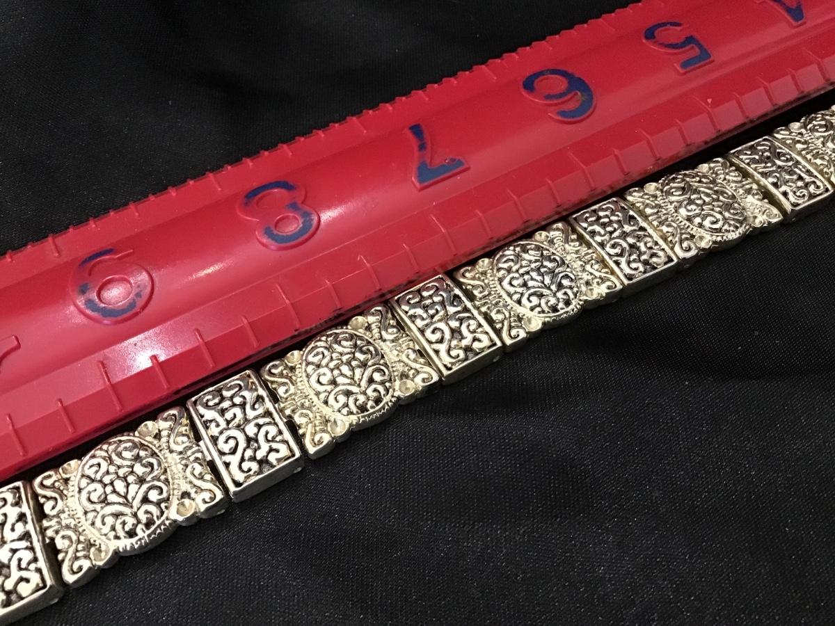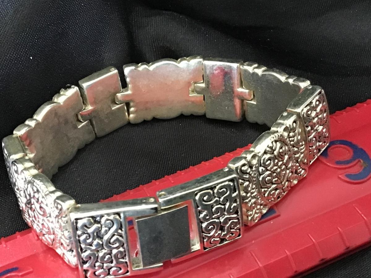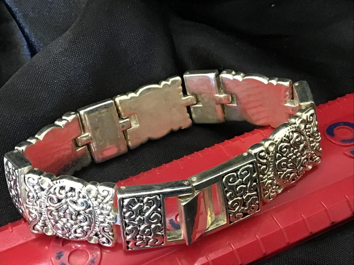 Scrolled Silver Linked Bracelet with Hinged Lock. No Marks