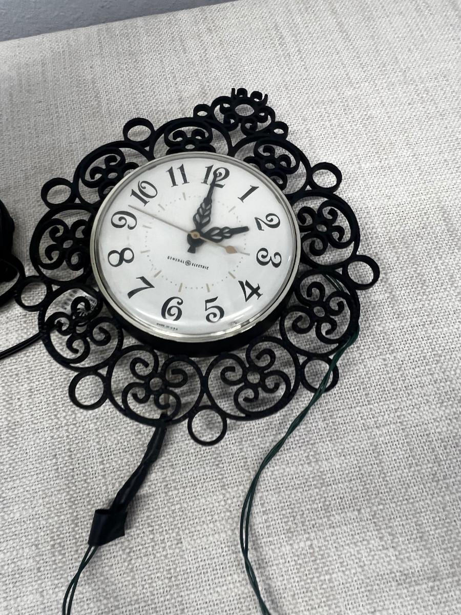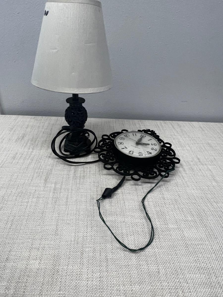 Scrolly Black Design; Clock and Lamp