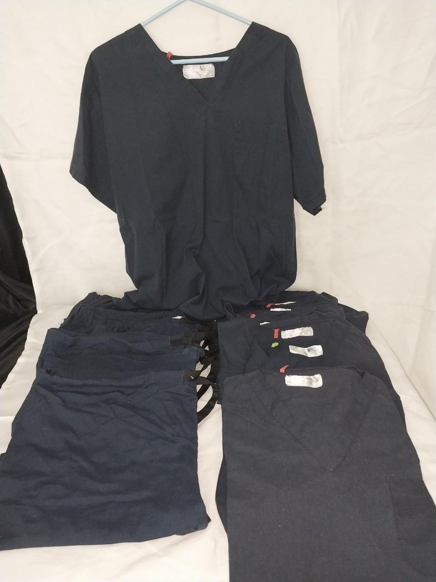 EXTRA LARGE DARK BLUE SCRUBS 4 BOTTOMS. 7 TOPS