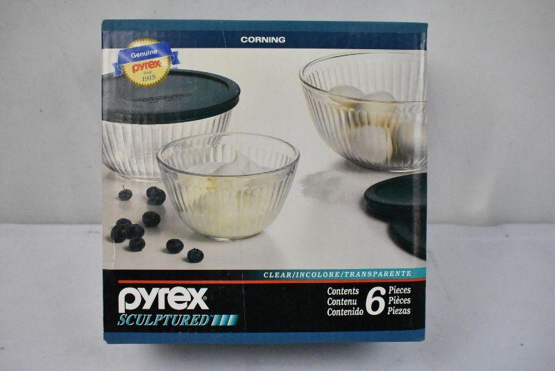 Sculpted Pyrex by Corning: 3 Bowls + 3 Lids - New, Old Stock 1998