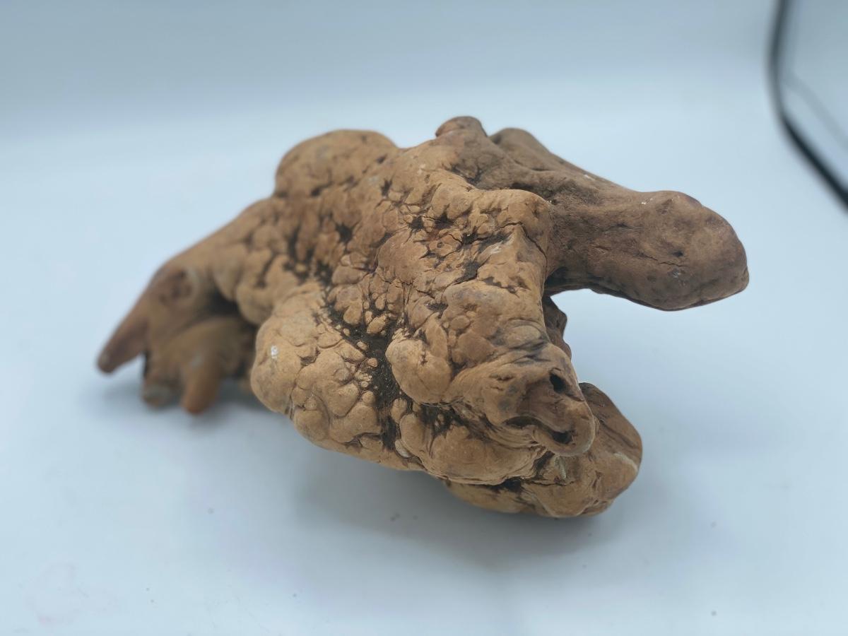 Large 15 x 15 x 6 piece of petrified hardwood in a curly sculptural pattern from Paul Kerr’s trips to Africa.