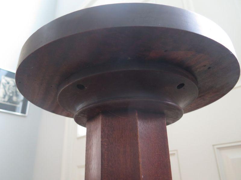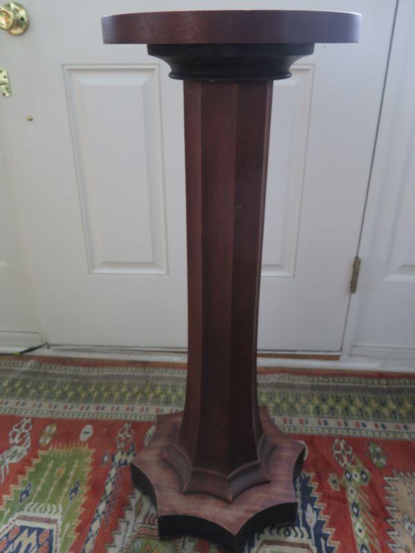 Wood pedestal stand to display sculpture. 14" platform and stands 36.5". **Please read Terms and Conditions before placing a bid. Pick up is Sunday, September 1, 2019 from 10am to 4pm in Williamstown. All sales are final. All sales are as is, where is. Please review all photos. Any props included in photos are not included in listing. All measurements are approximate. From home with cats.