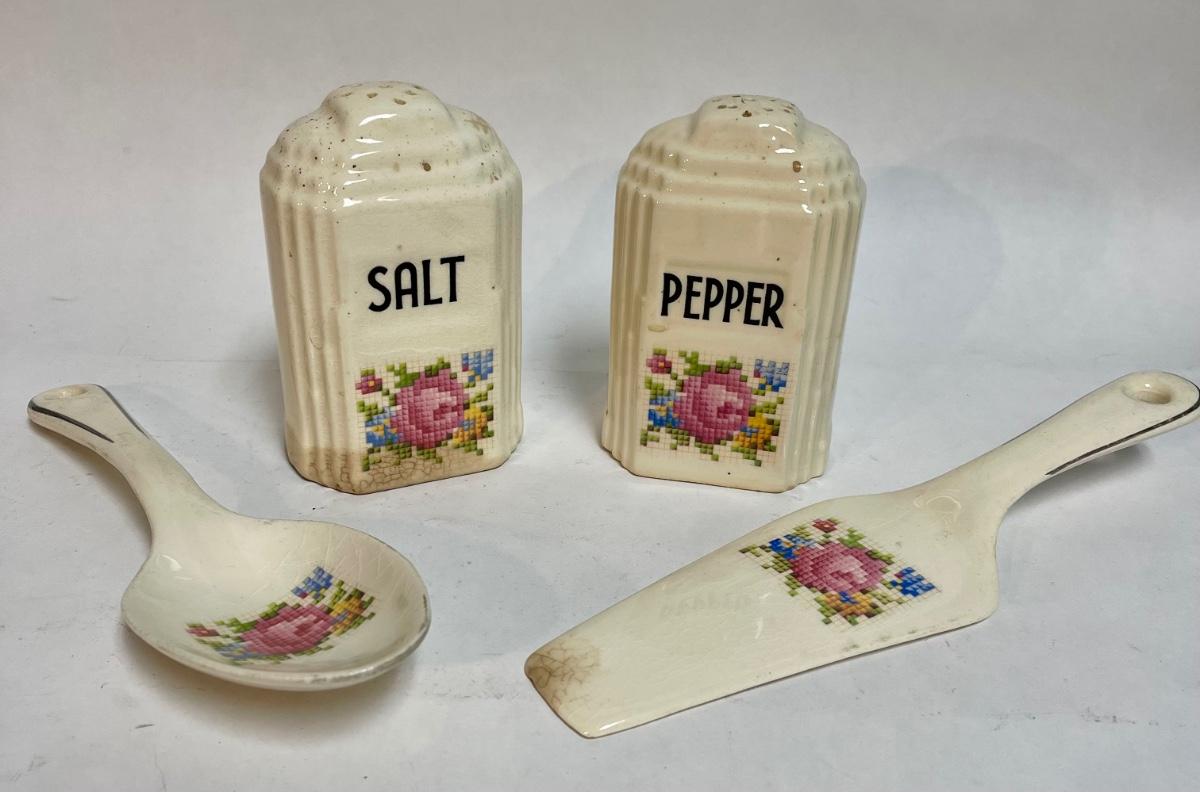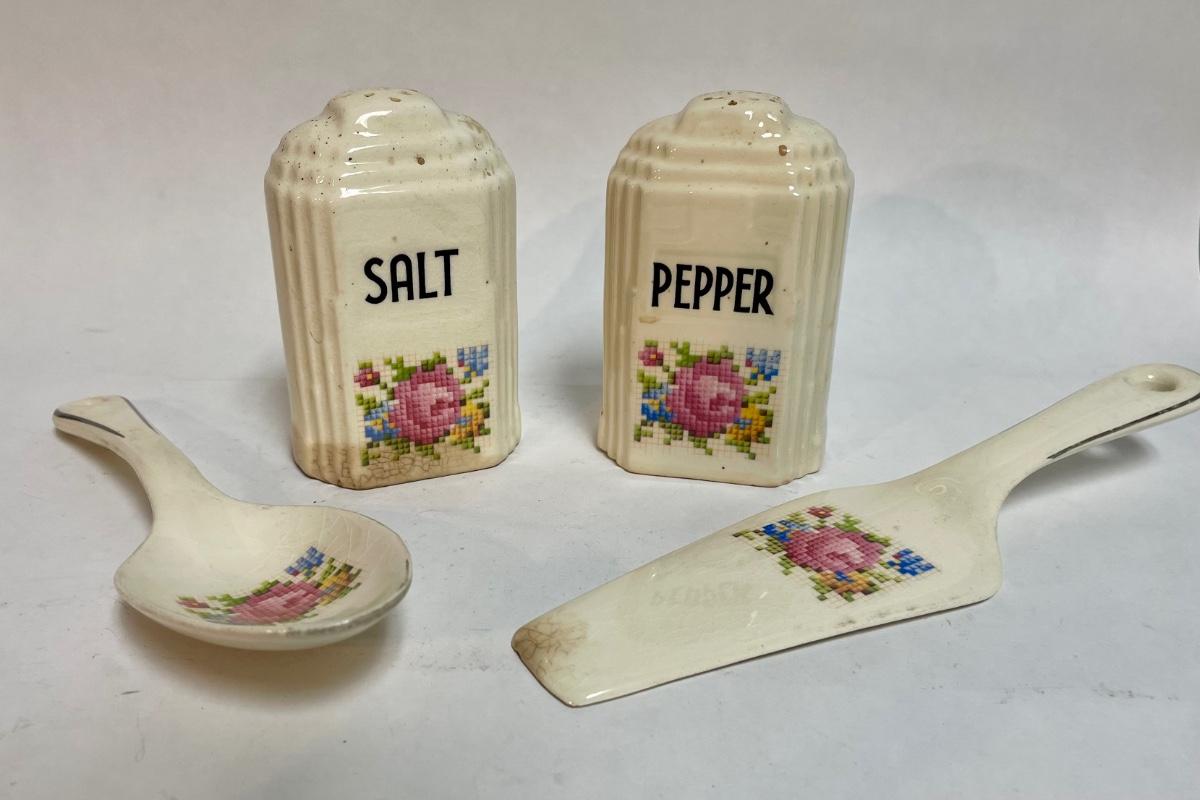 Large Salt & Pepper Shakers, serving spoon, and pie server Cross-stitch pattern Harker Bakerite