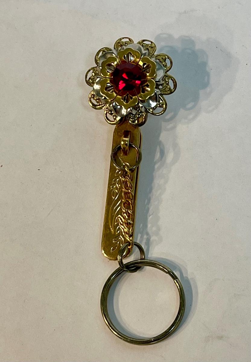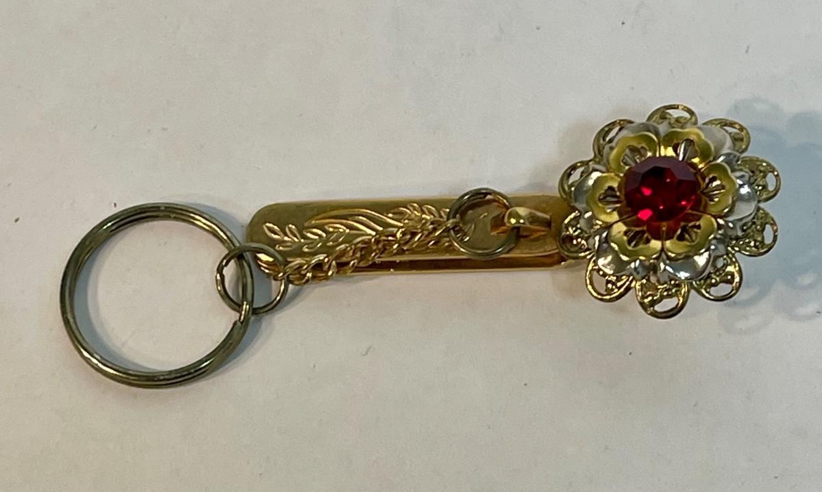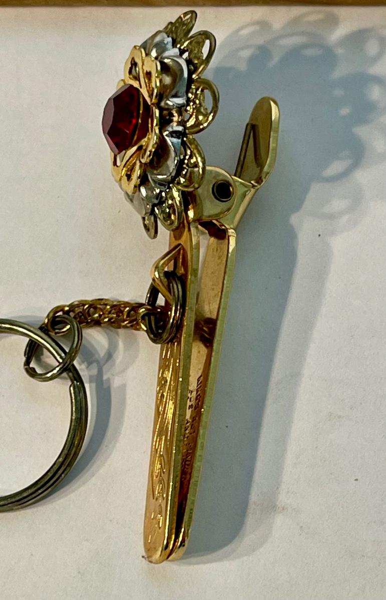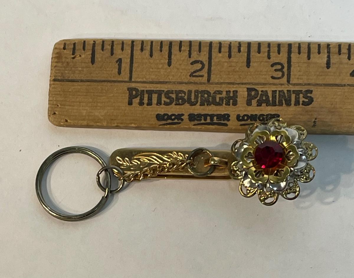 Kings Key Finder 1950's red stone gold tone rhinestones