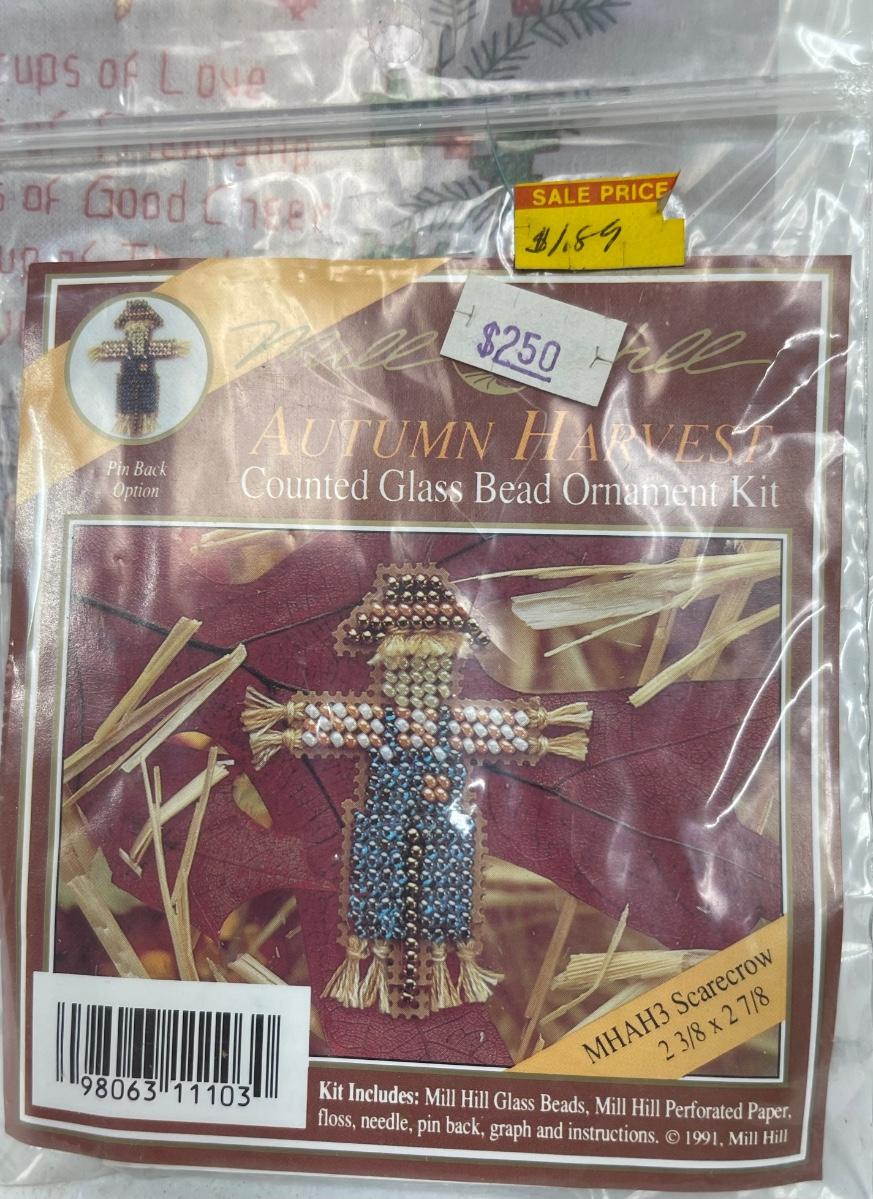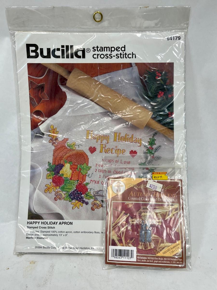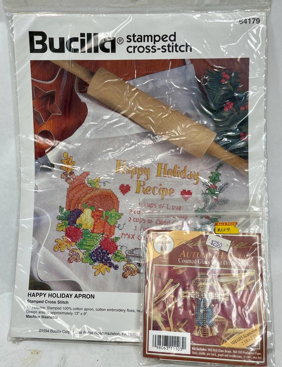 Bucilla Stamped Cross-Stitch Apron and Miniature Scarecrow Cross-Stitch