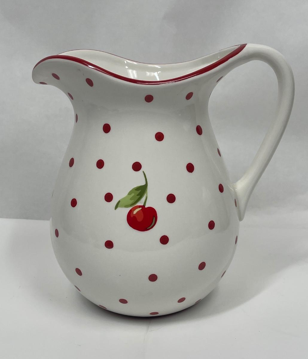 Hallmark Vintage Ceramic Pitcher Cherry Themed White & Red