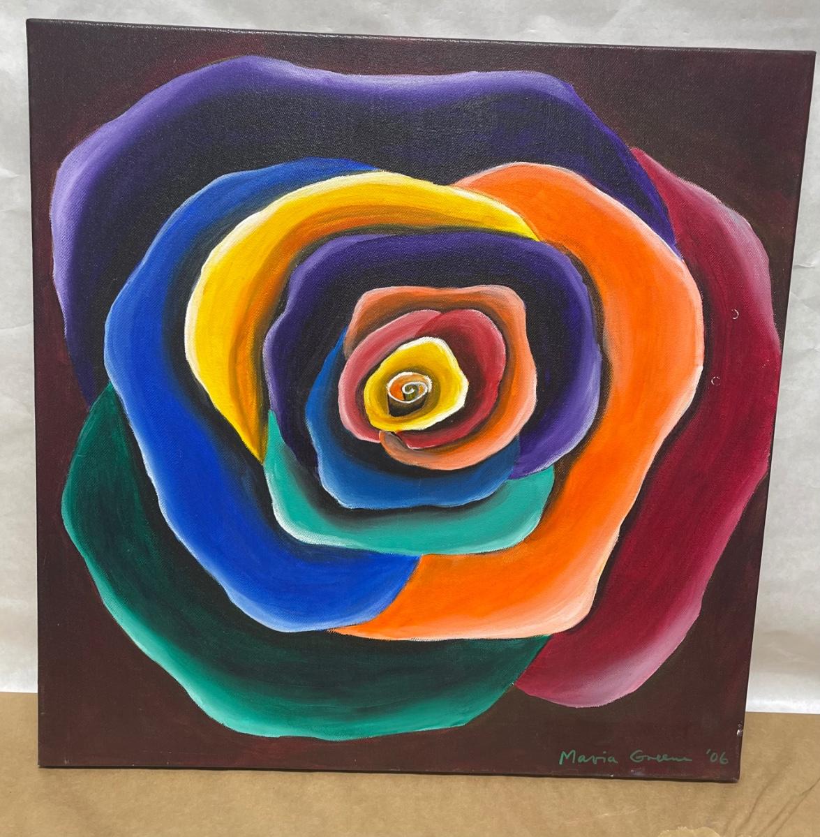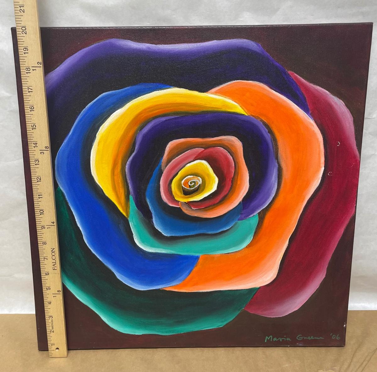 Rainbow Rose #5 Painting on 22" Square Canvas signed Maria Greene 2006