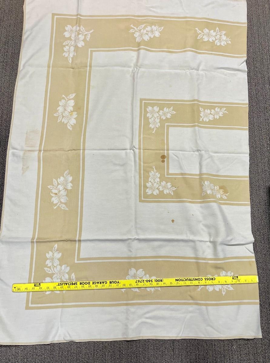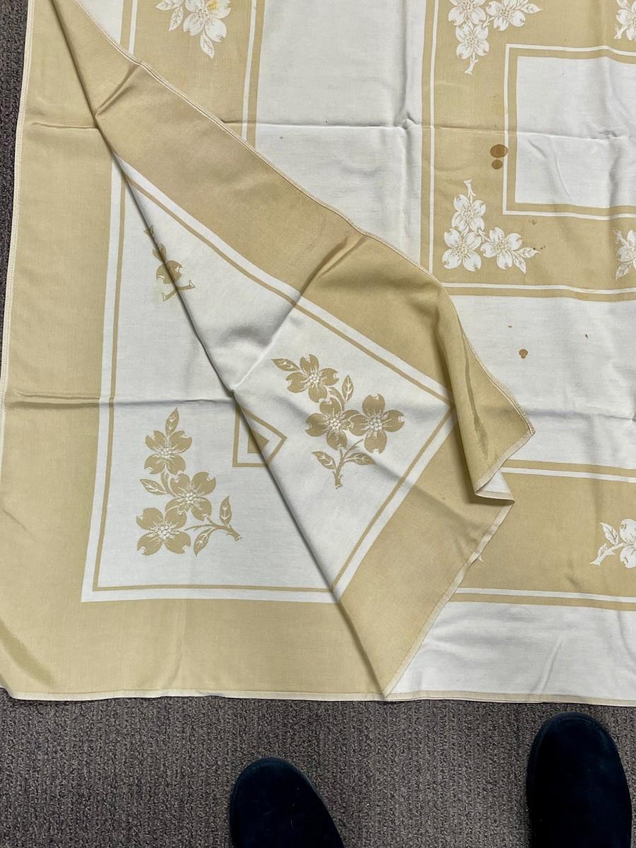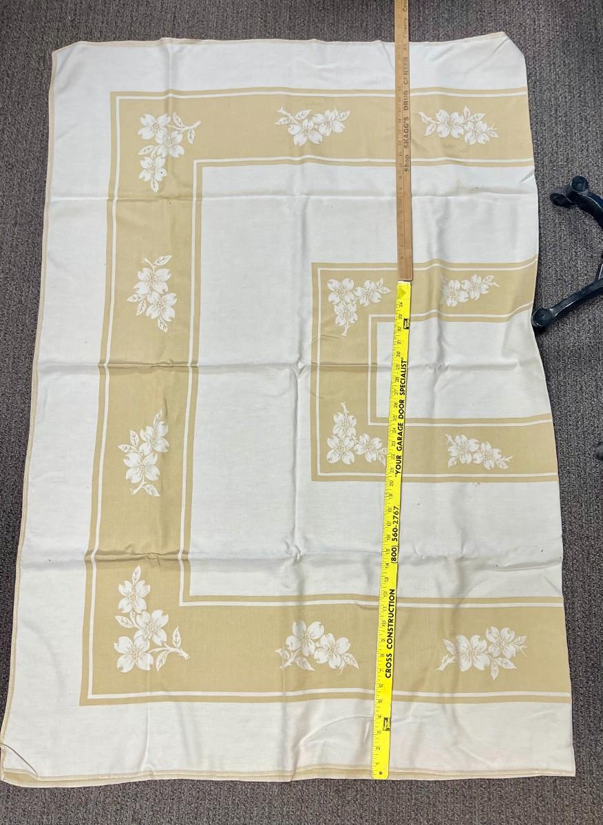 Vintage Damask Tablecloth Gold Beige and Cream 78" x 57"