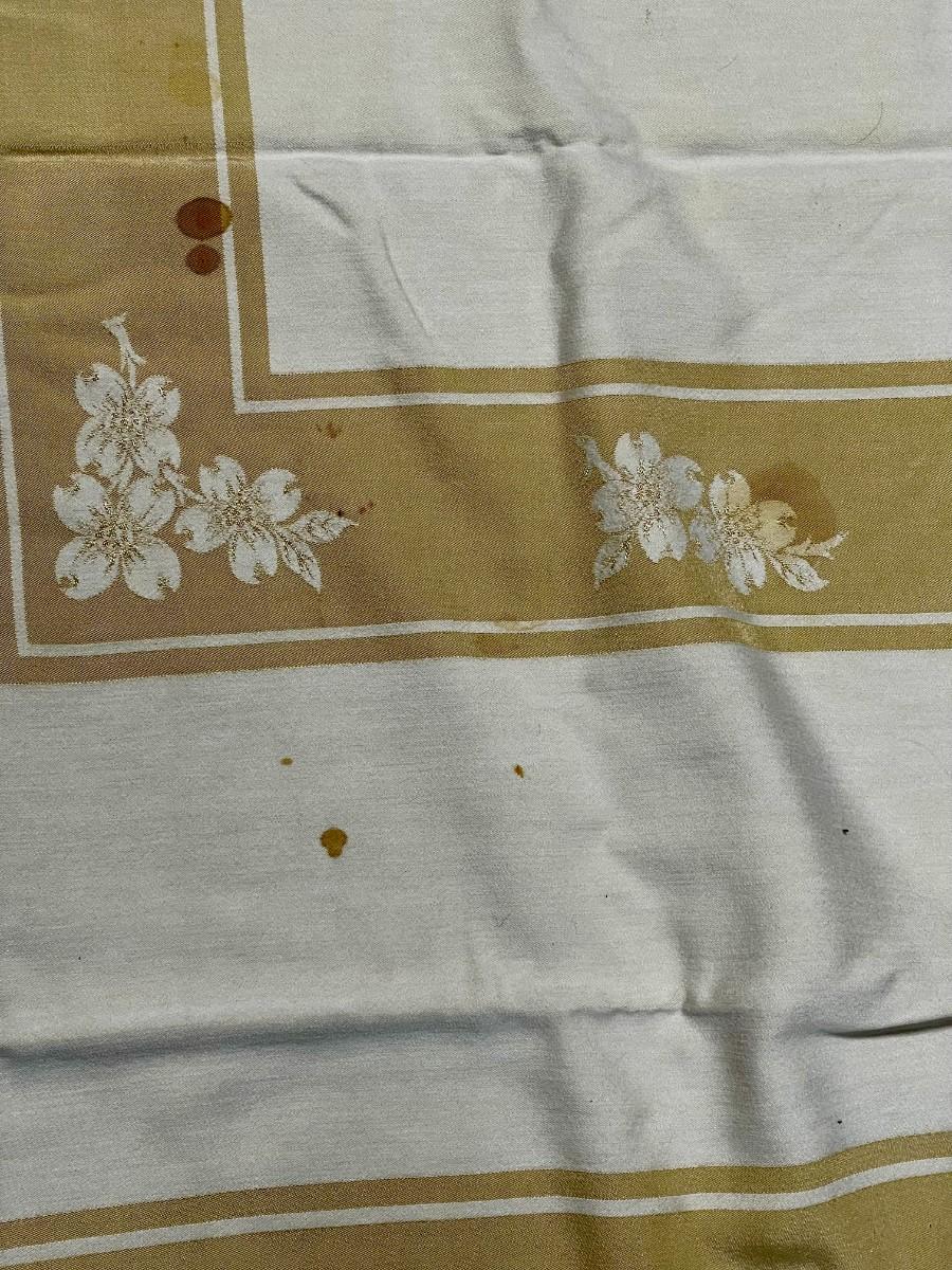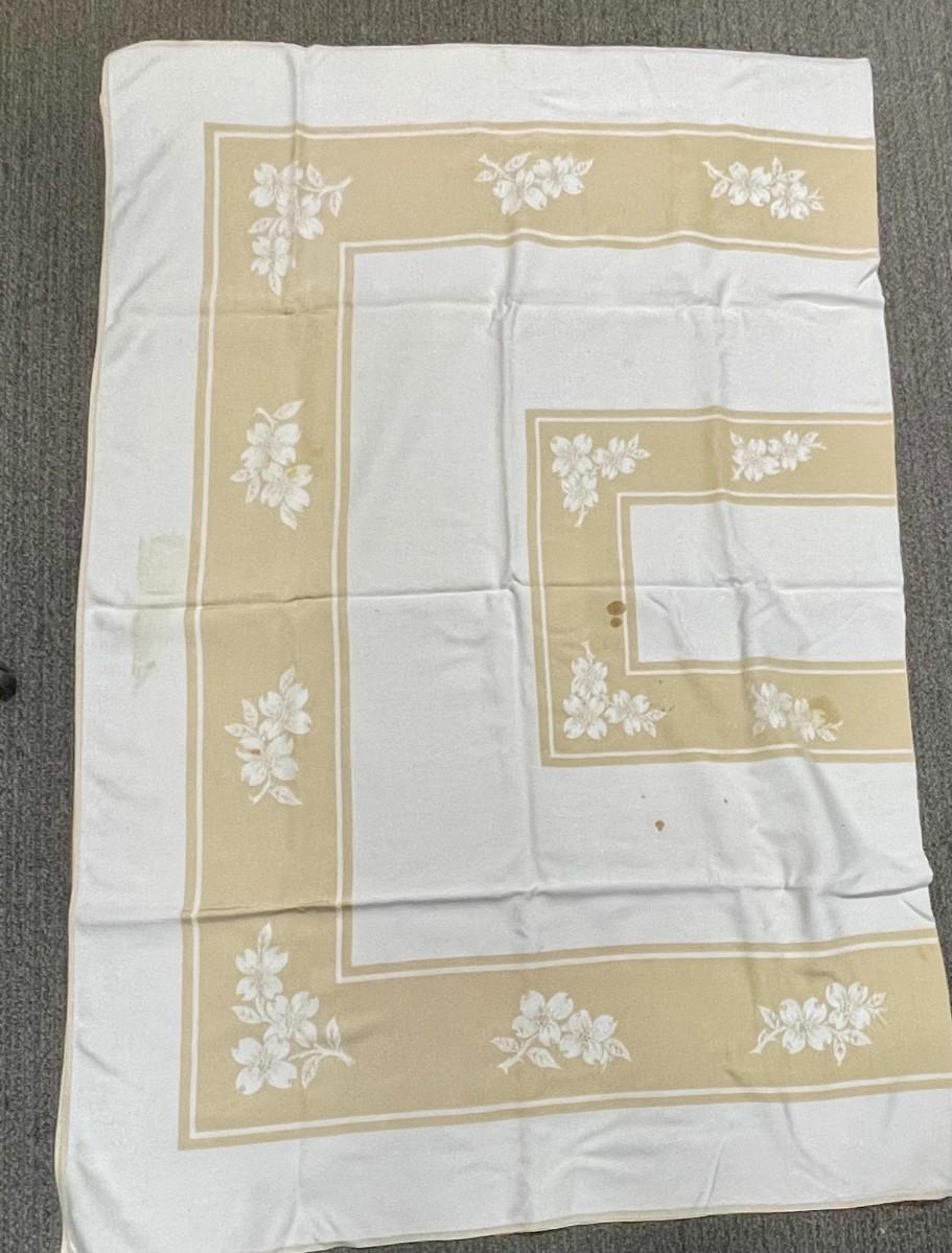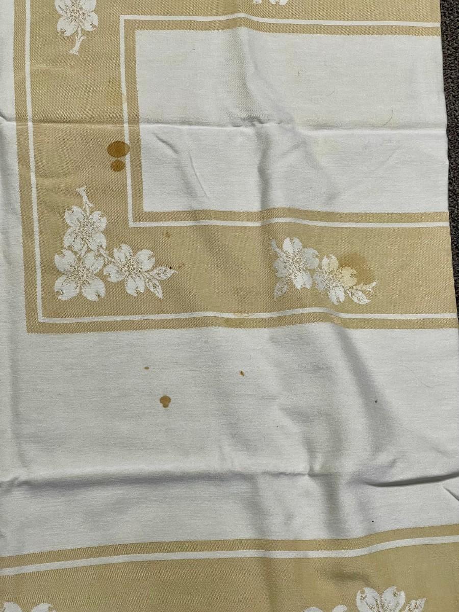 Vintage Damask Tablecloth Gold Beige and Cream 78" x 57"