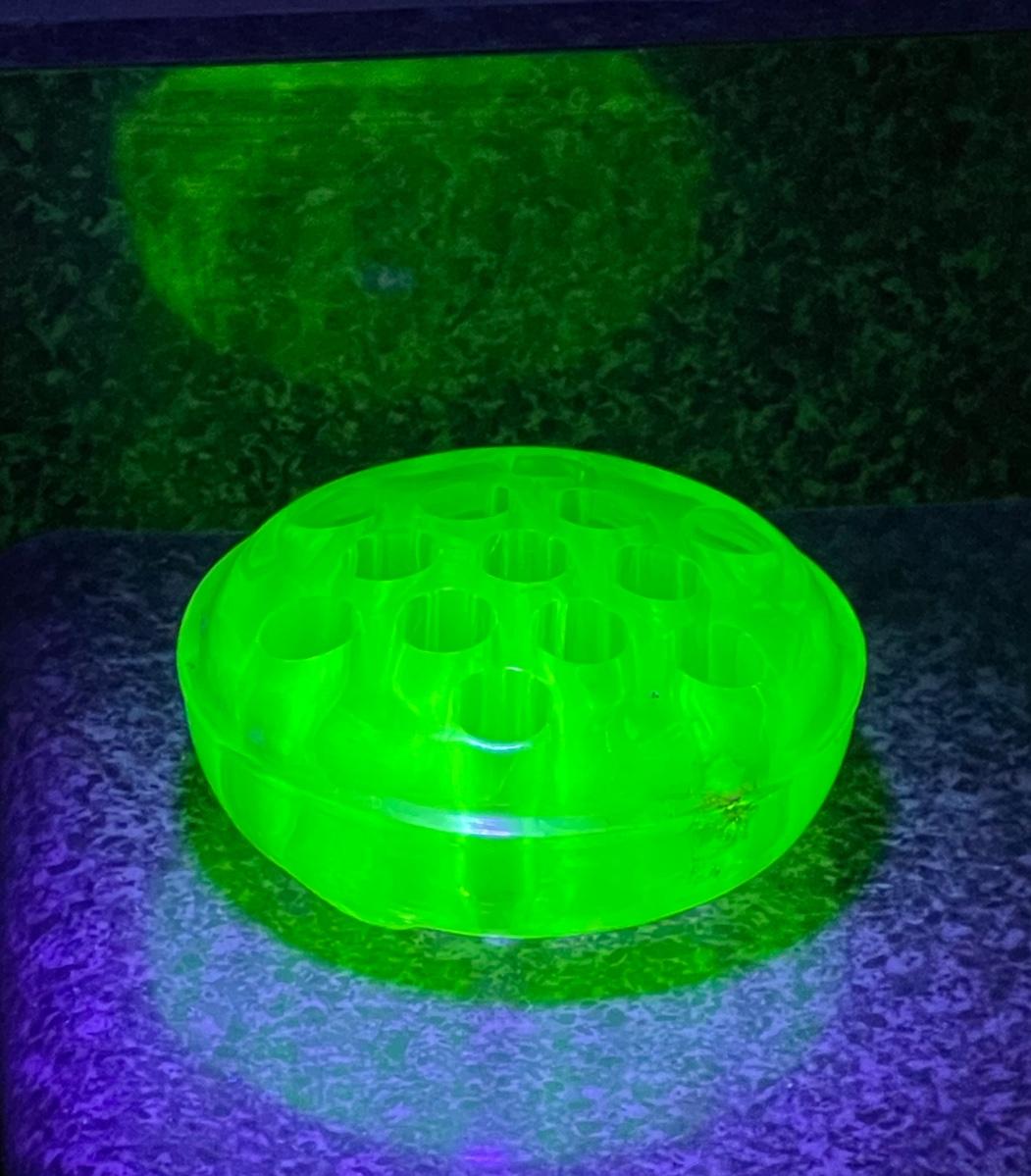 Needs a little more cleaning in the holes, but otherwise in very good condition with a very bright glow.