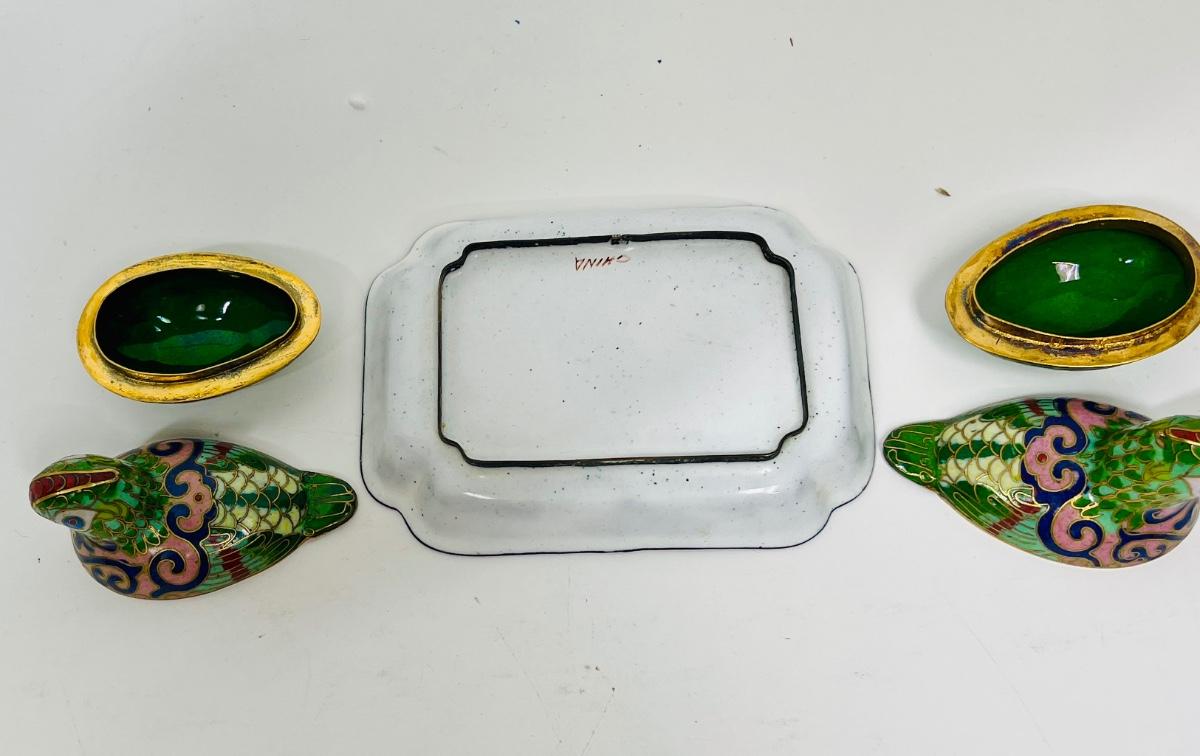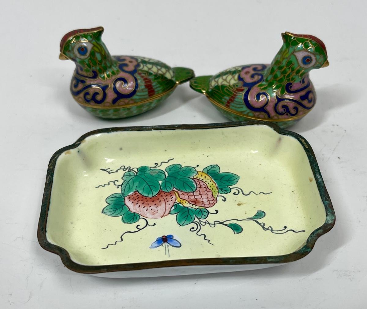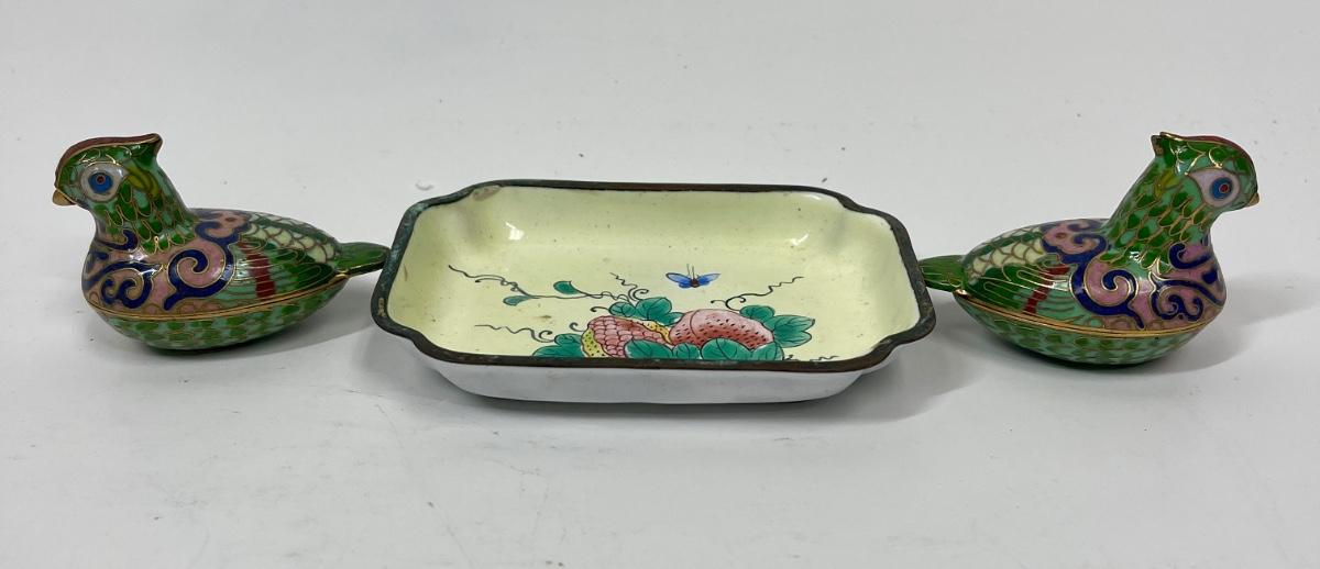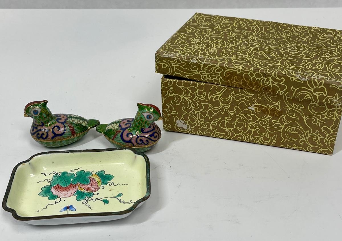 Cloisonné Lot - 2 Bird Trinket boxes and Tray