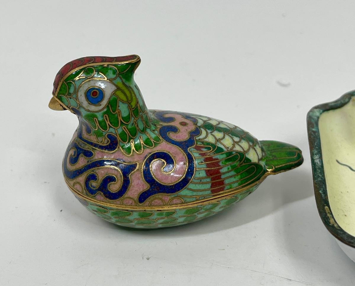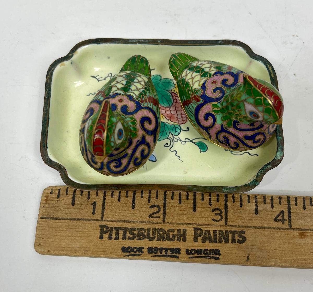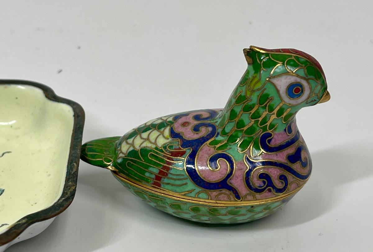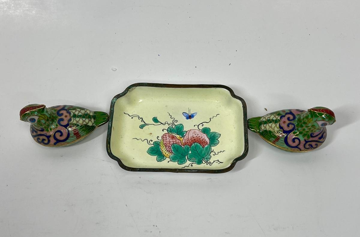 Cloisonné Lot - 2 Bird Trinket boxes and Tray
